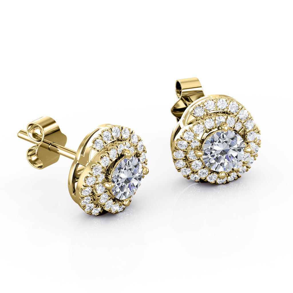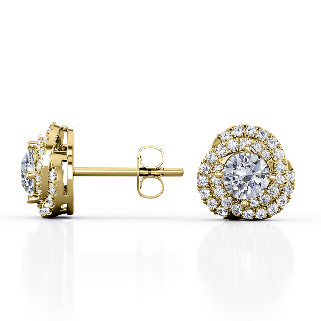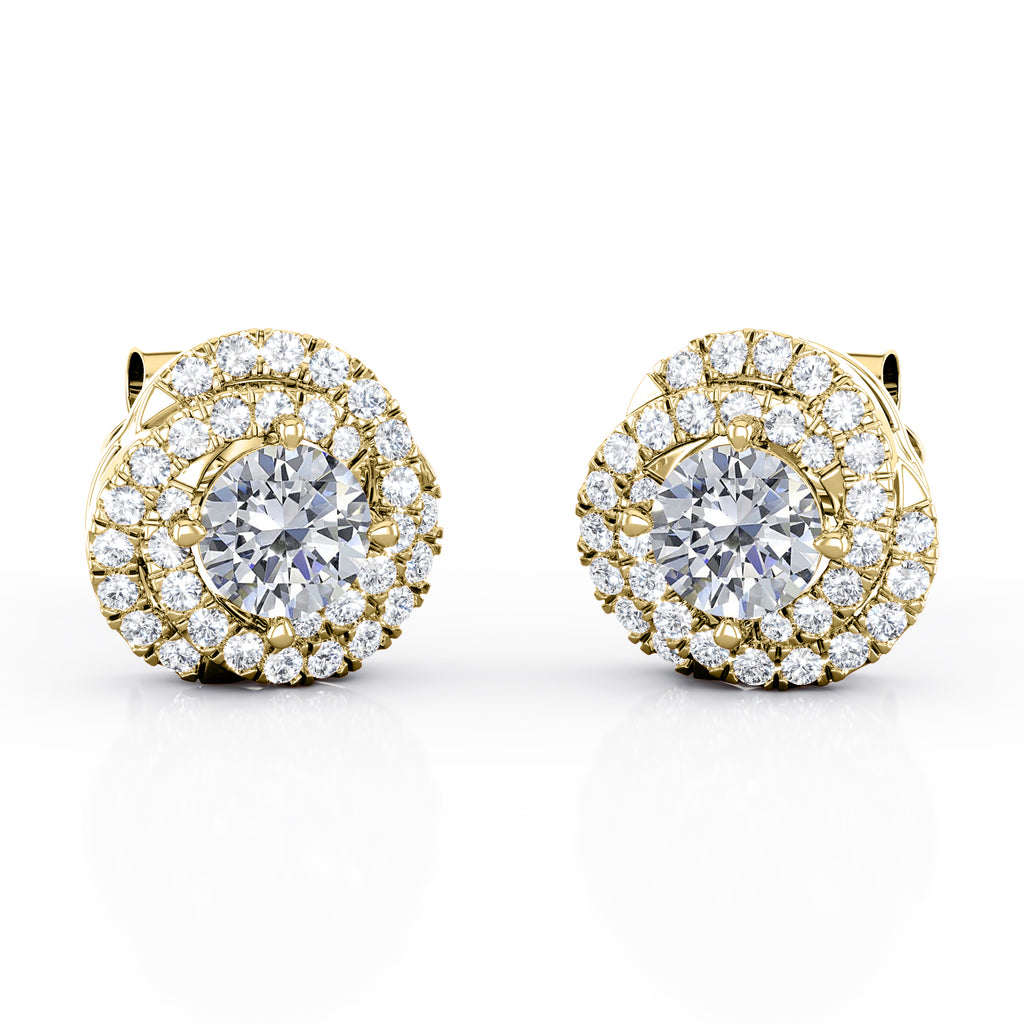 Infinity 0.95 Carat Round Certified Moissanite and Diamond Floating Halo Snowflake Ear Studs in Yellow Gold