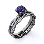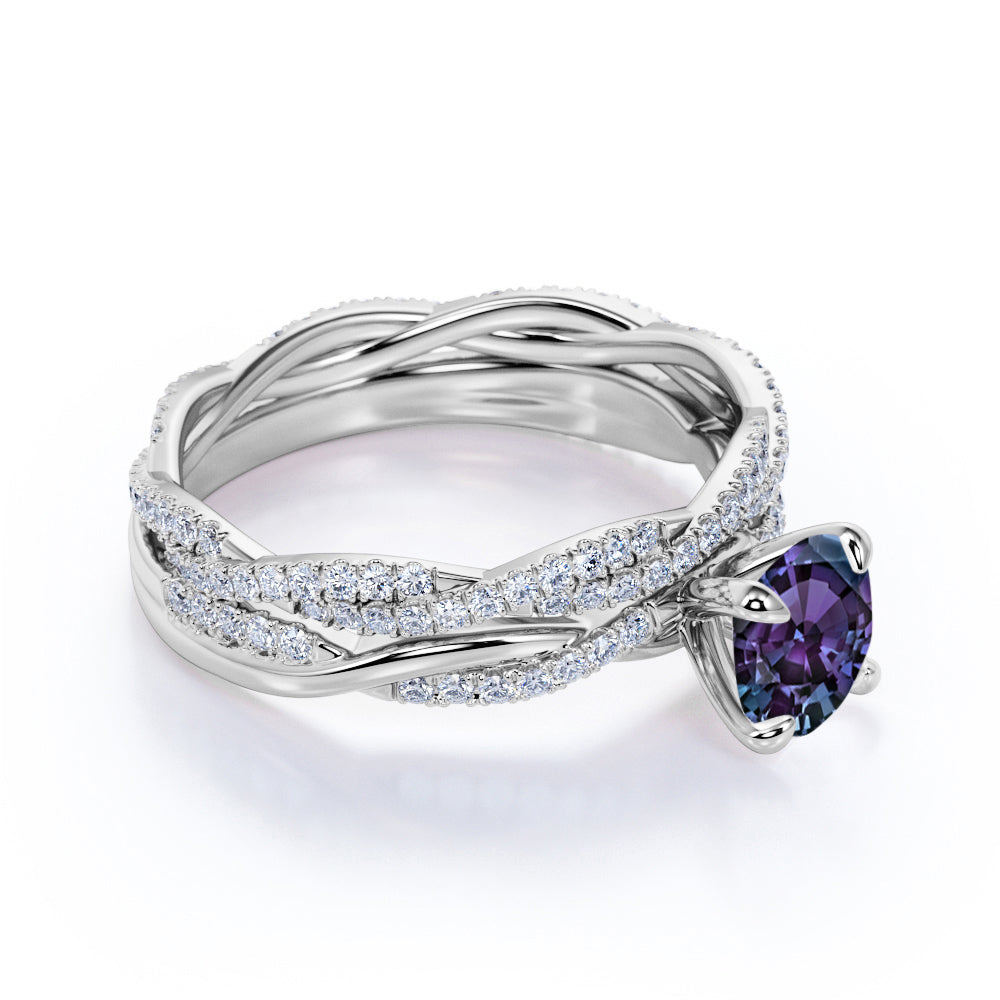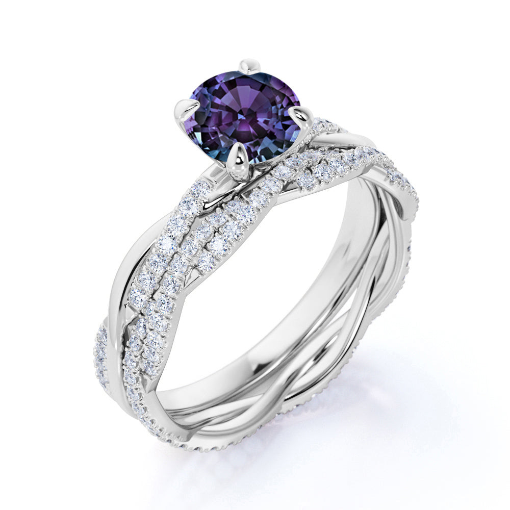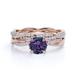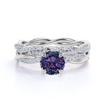 Infinity 1.75 Ct Round Cut Alexandrite Bridal Set