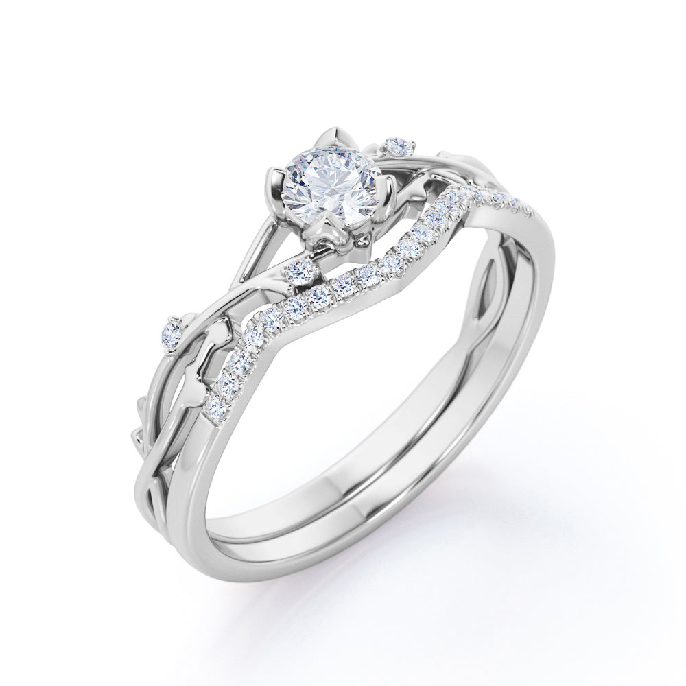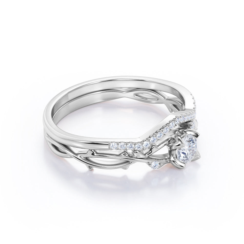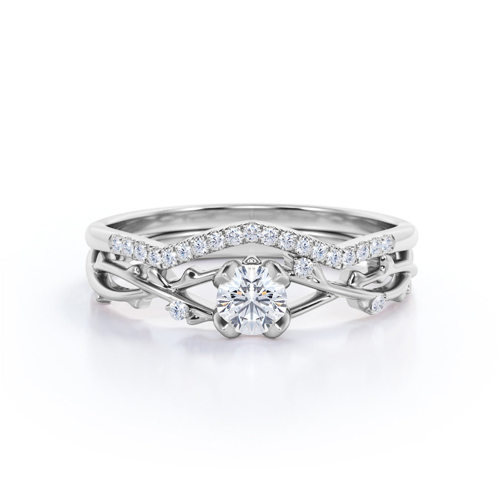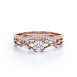 Infinity Branch Design 0.6 CT TDW Round Cut Natural Diamond Pave Wedding Ring Sets