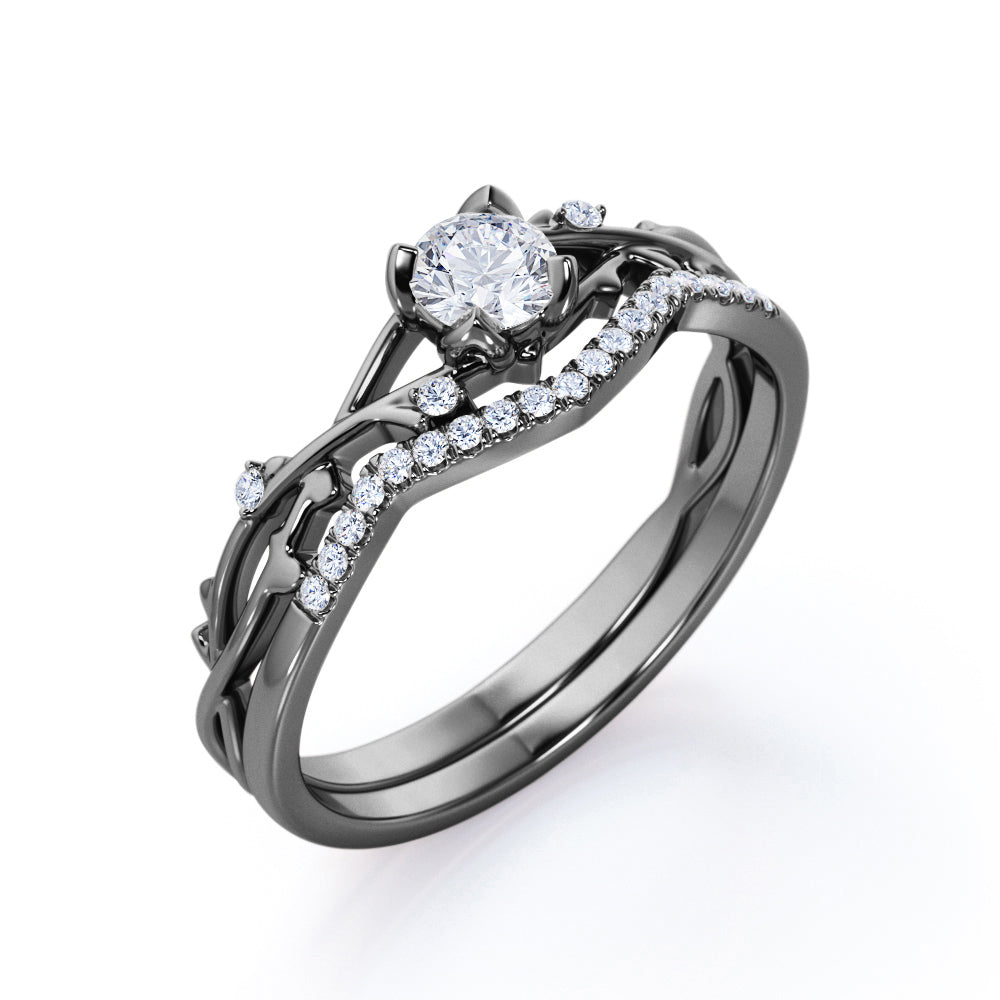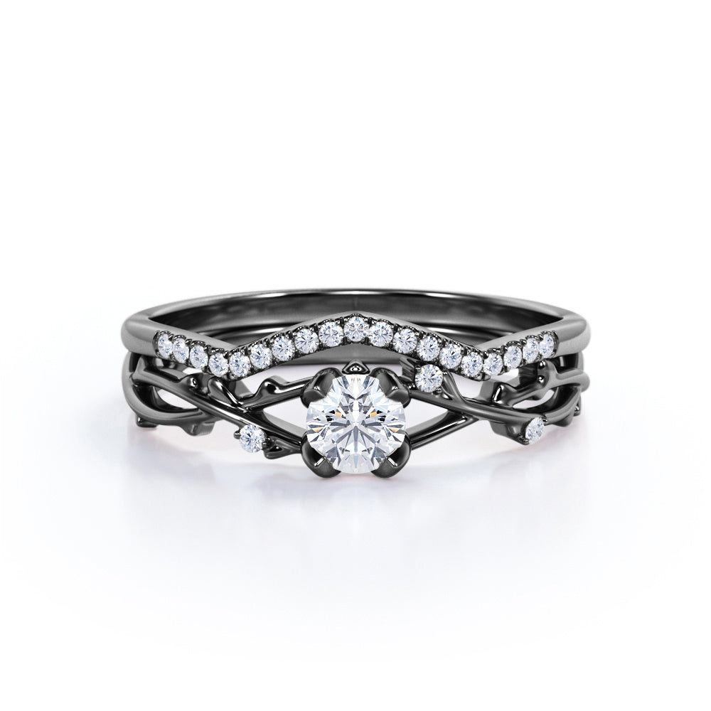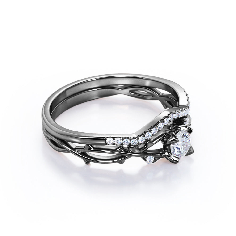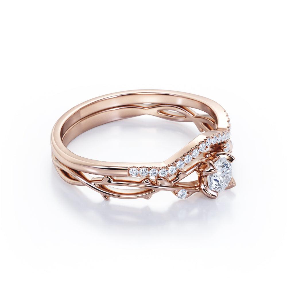 Infinity Branch Design 0.6 CT TDW Round Cut Natural Diamond Pave Wedding Ring Sets