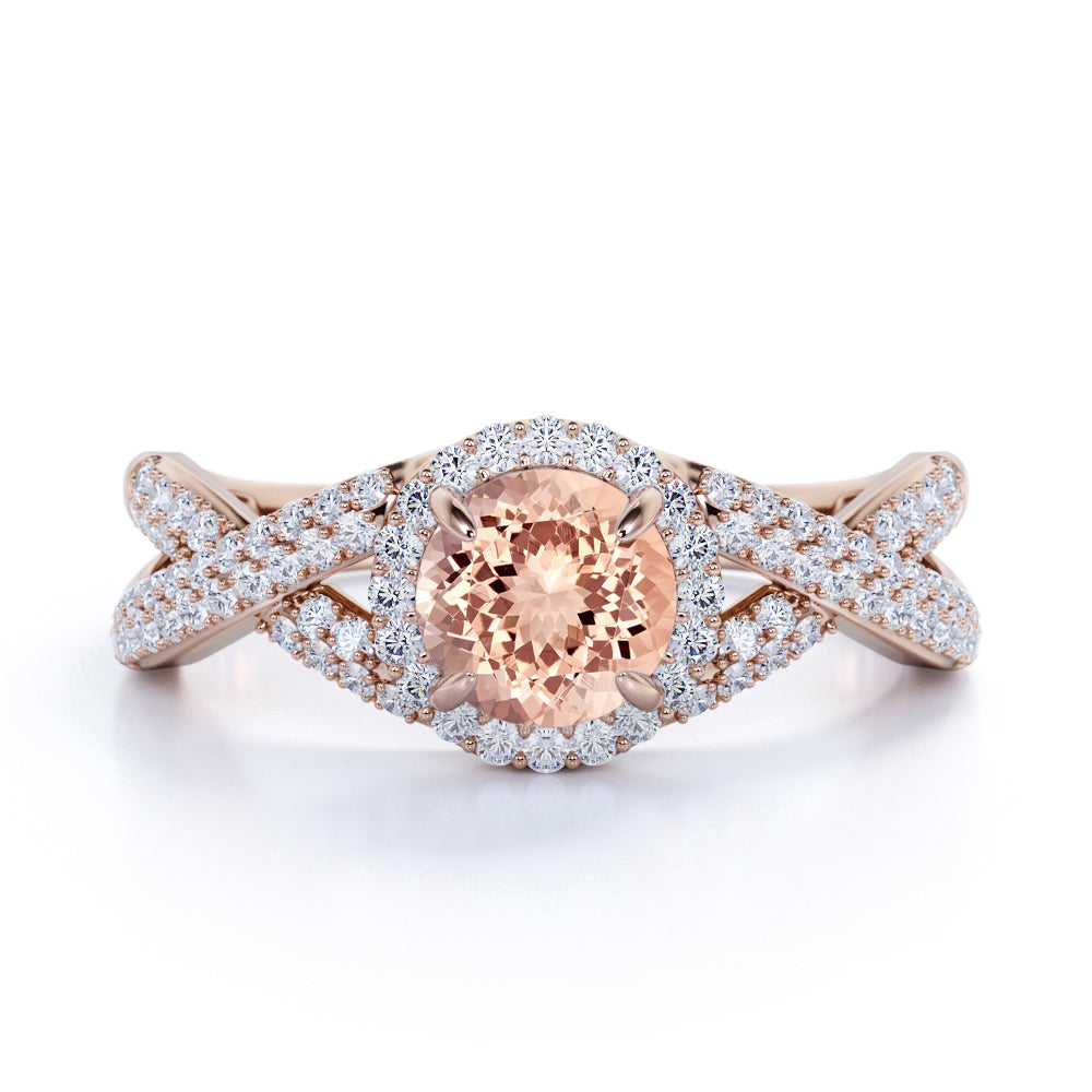 Infinity 1.50 ct Round Morganite Halo Engagement Ring