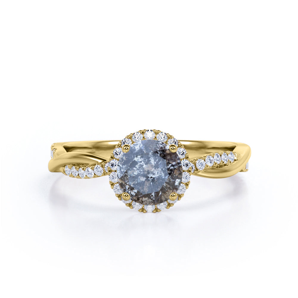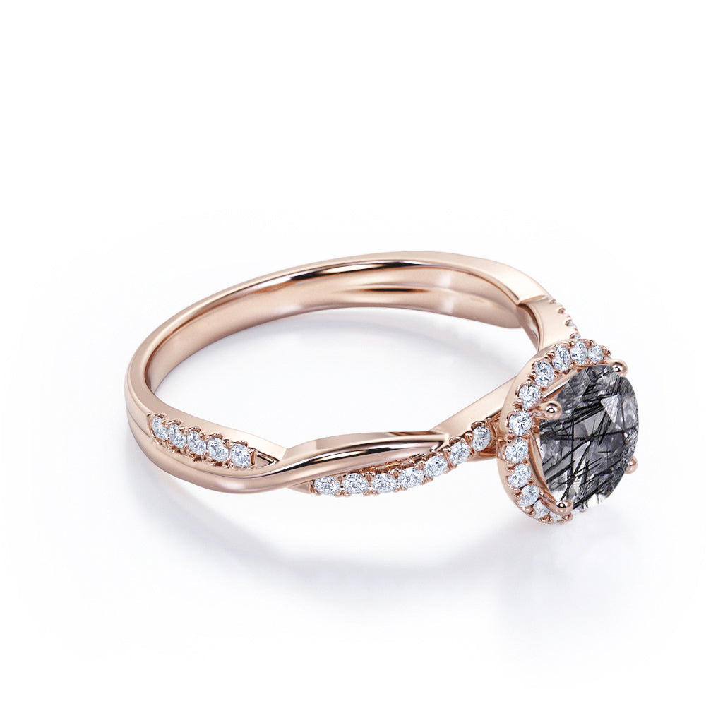 Infinity 1.25 ct Round Black Rutilated Quartz Halo Engagement Ring