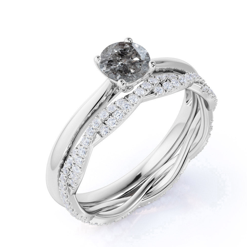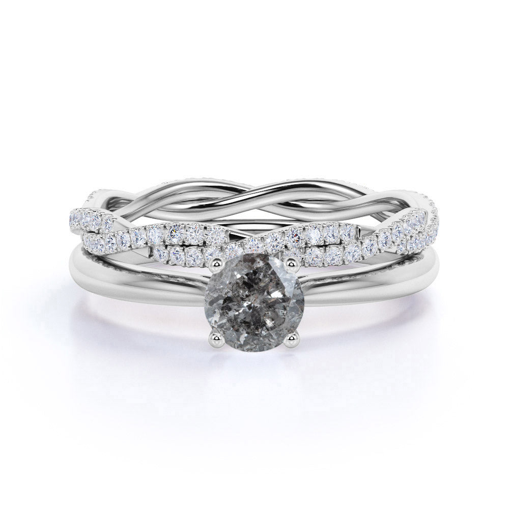 Infinity 0.75 Ct Round Salt and Pepper Diamond Bridal Set