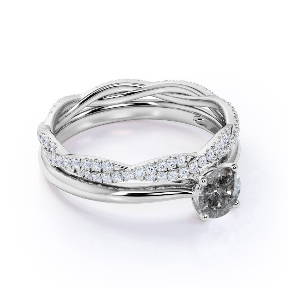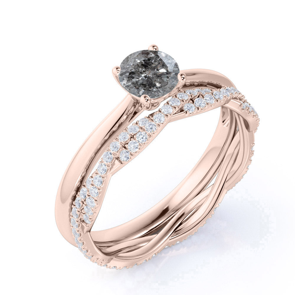 IMPORTANT NOTE: Since each Salt and Pepper Diamonds is one of a kind, the actual color of it may vary from the one that is pictured above. With its quirky inclusions, this Infinity Solitaire 1 Carat Round Cut Dark Grey Salt and Pepper Diamond and Eternity Pave Band Bridal Set Rings will surely make you stand out from others. This crossover ring features .50 carat round cut natural Salt and Pepper Diamond and .25 carat real side Diamond for gold ring and Moissanite for silver ring. This exquisite wedding ring sets can be customized to either 10k, 14K and Gold over Silver and either Black Gold, Rose Gold, White Gold or Yellow Gold. Also, as your satisfaction is our most priority, we will do our best to have your handmade jewelry be carefully and beautifully crafted by our expert jewelers. The order also comes with a 30-day full refund policy. Due to its unique appearance, this ring will be a distinctive gift for all special occasions. With its unique appearance, you can be sure that no any other rings will look exactly alike. If you are searching for some alternate gemstone with unique appearance, this Salt and Pepper Diamond ring will be your right choice. It is eco-friendly, ethical, and environmental friendly. Design and create your very own unique ring that makes you outstanding from the rest! Create a fascinating look on your finger with this Salt and Pepper Diamond ring for women which is available in both solid gold and sterling silver. Those who has a penchant for vintage and flawless ring would completely fall in love with this affordable ring. Its inclusions reminds us that beauty doesn't always lie in perfection. It is the perfect match for those who are looking for a remarkable gemstone rings as Salt and Pepper embodies their own unique combination of color and uplifting meaning.