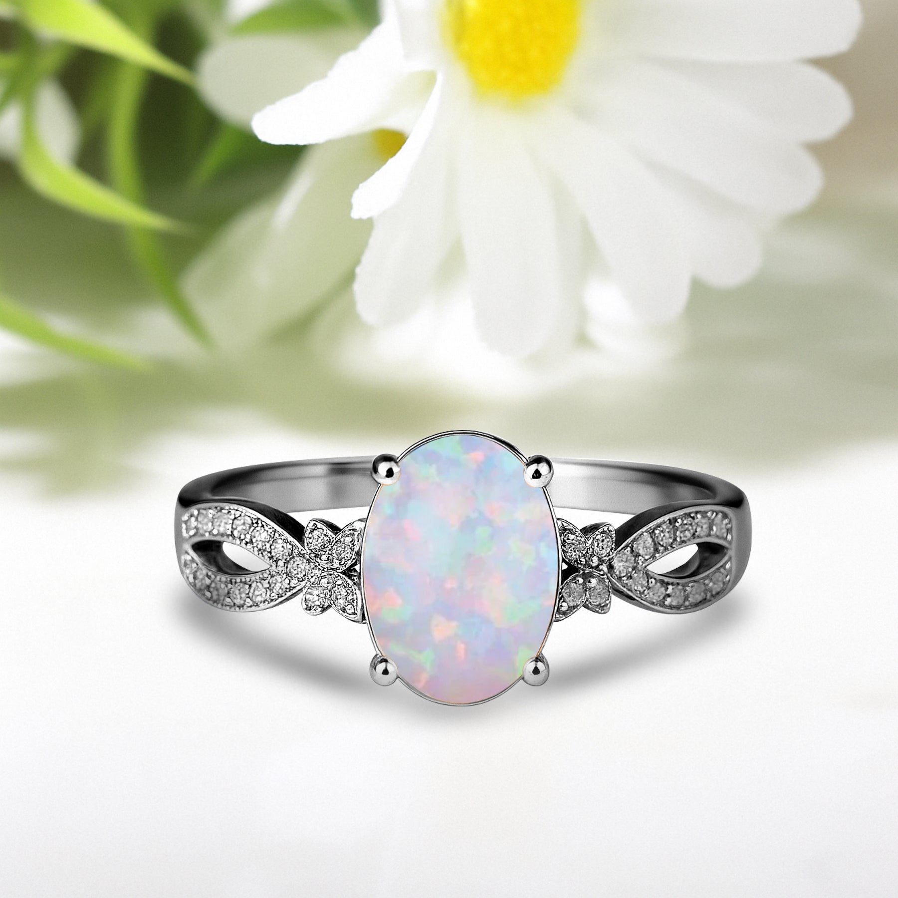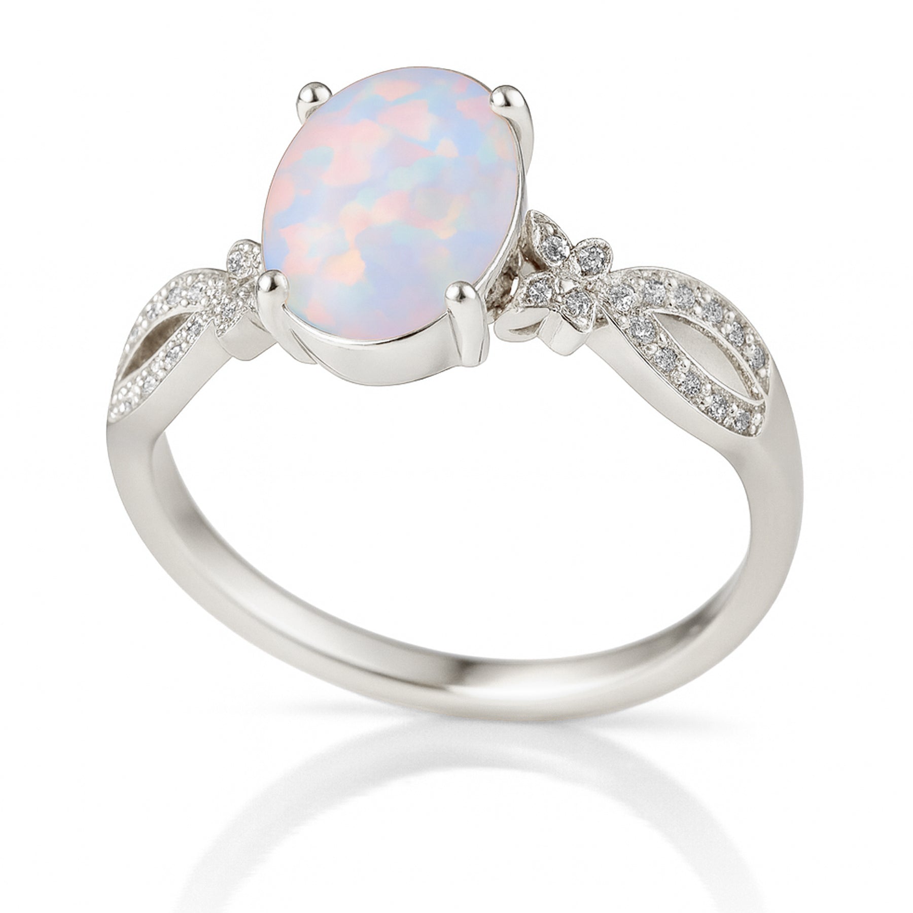 Inifnity 1.35 Ct Oval Cut Lab Created Opal Milgrain Engagement Ring