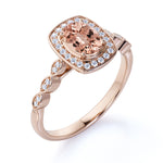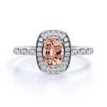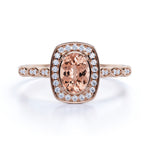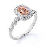 Large 1.50 Carat Elliptical Shape Dark Salmon Morganite and Diamond Art Deco Engagement Ring in White Gold
