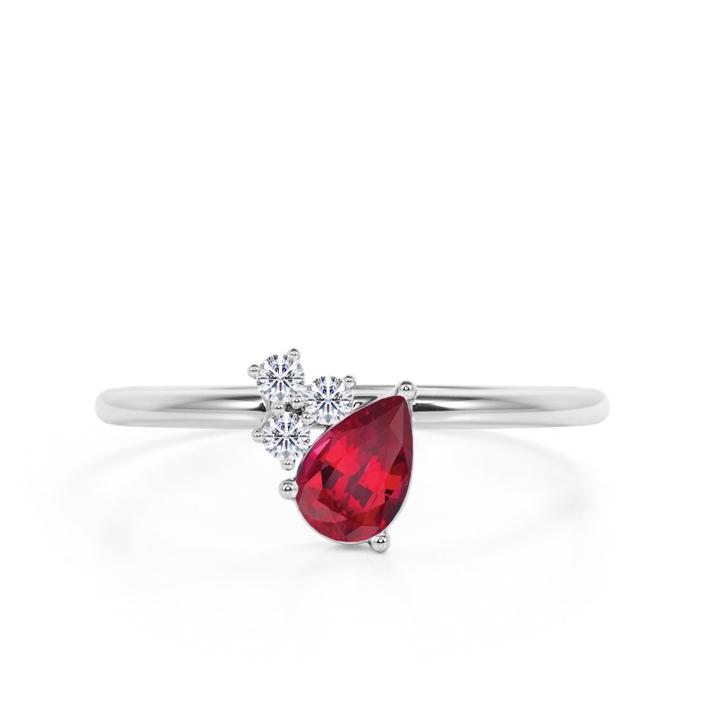 Leaf Design 1.50 Carat Pear Shape Lab Ruby and Diamond Engagement Ring in White Gold