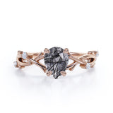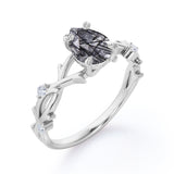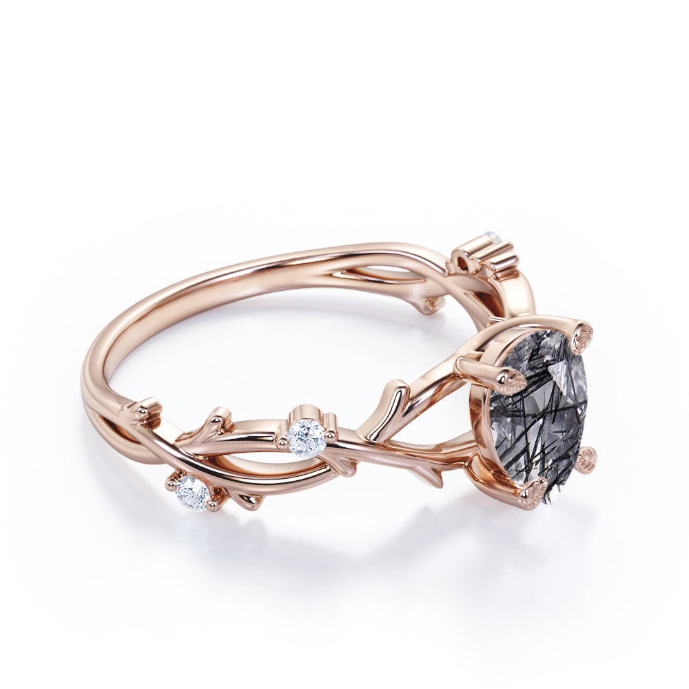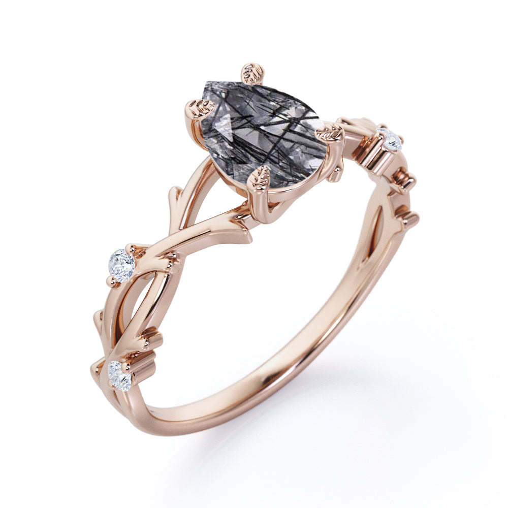 Leaf Twig 1.10 ct Pear Black Rutilated Quartz Infinity Engagement Ring