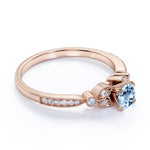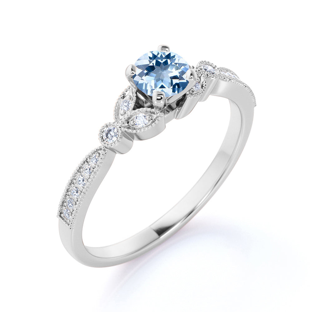 Leaves 1 ct Round Aquamarine Art Deco Engagement Ring
