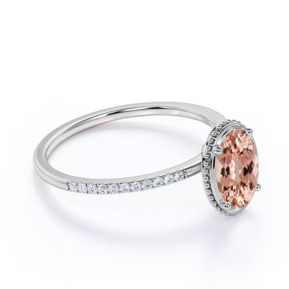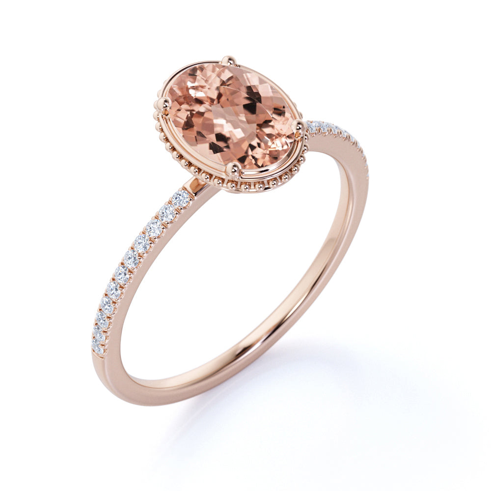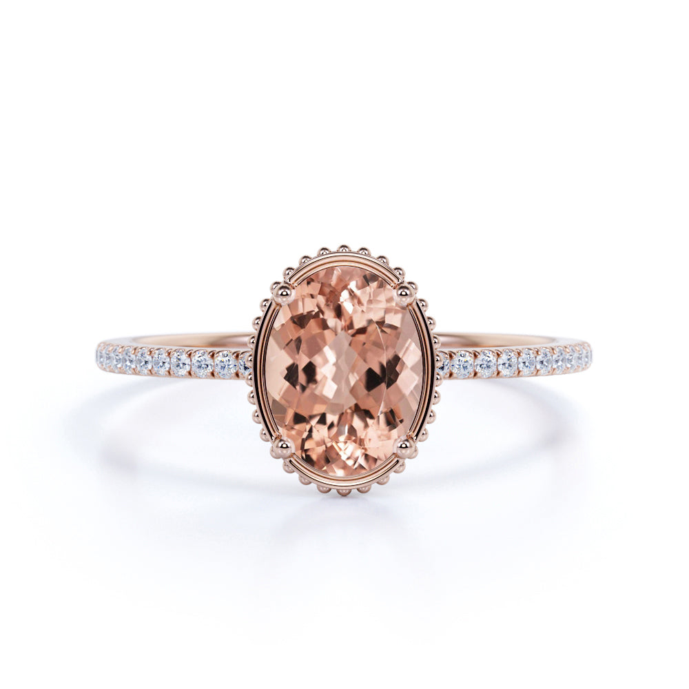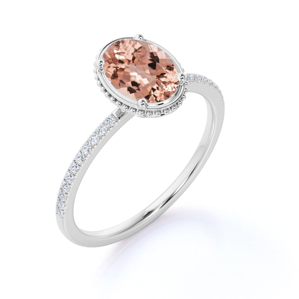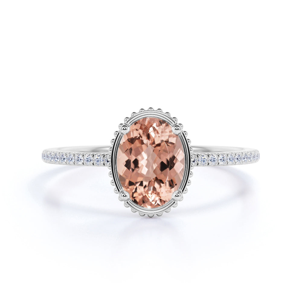 1.25 ct Oval Peach Pink Morganite Pave Engagement Ring