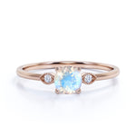 Limited Time Sale 1.35 Carat Round Shape Rainbow Moonstone and 3 Stone Diamond Vintage Engagement Ring in White Gold