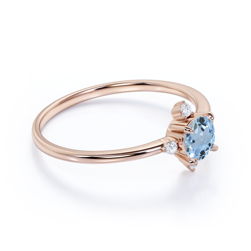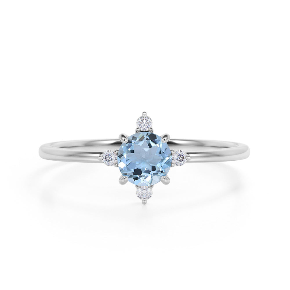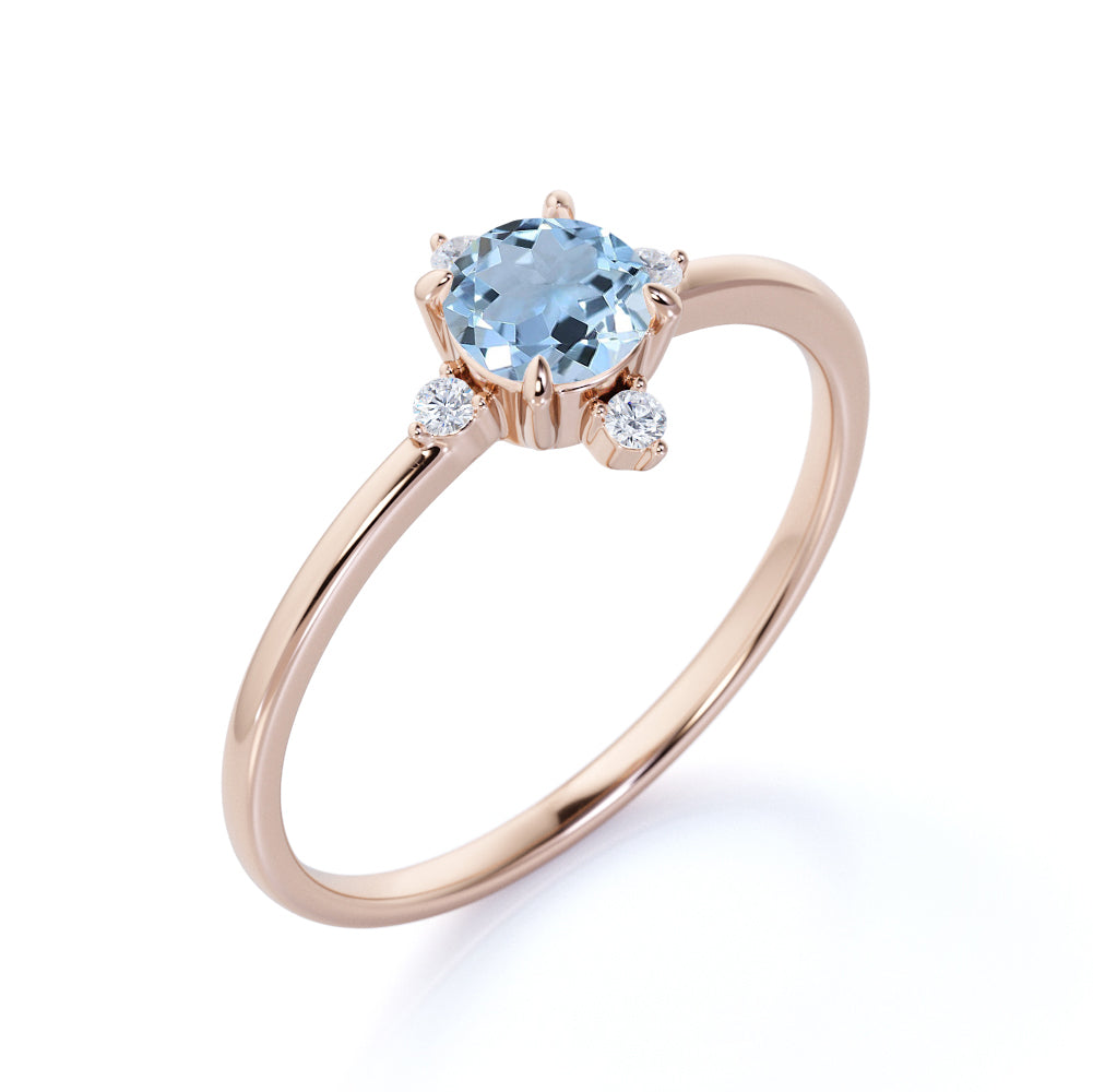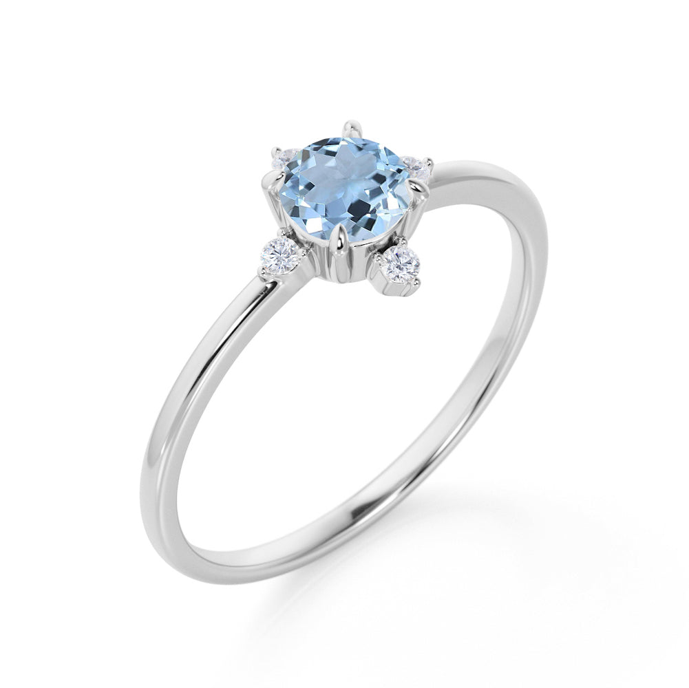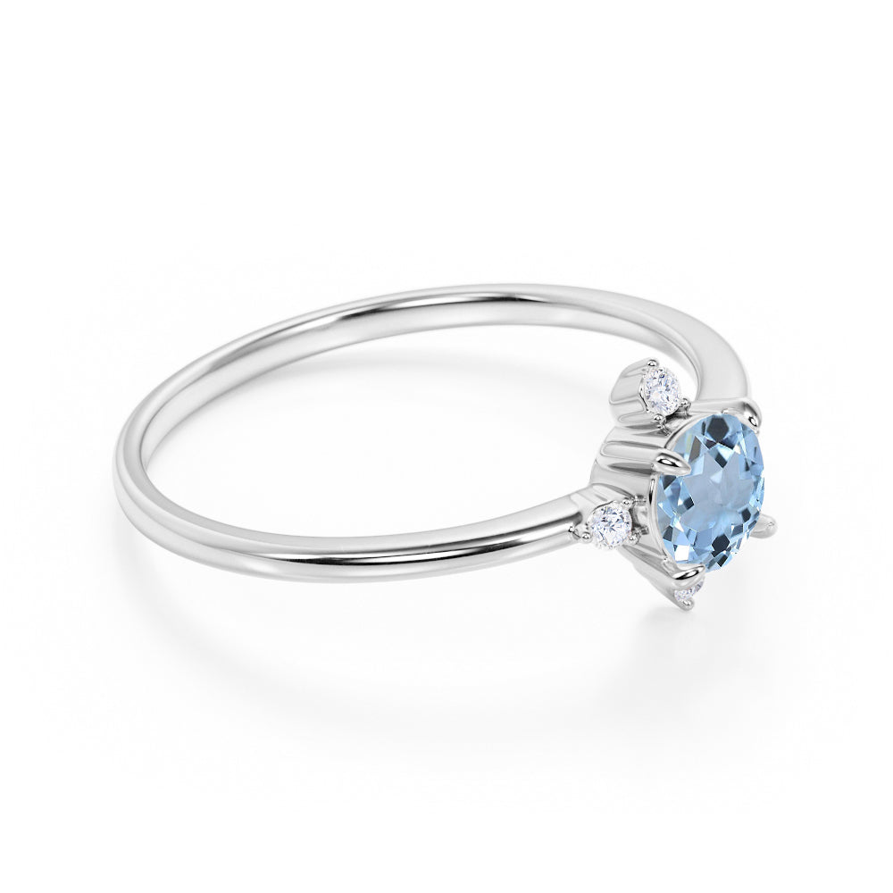 This aquamarine engagement ring band is so durable and therefore, you can use it everyday and rely with this amazing aquamarine daily wear engagement ring band. If you are done with all the unnecessary crazy design, this minimalist aquamarine ring is for you. This aquamarine ring features an approximately 1.25 carat round cut genuine aquamarine, surrounded by .20 carat certified side diamonds, for a total weight of 1.45 carats.