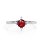 Limited Time Sale 1.45 Carat Round Cut Ruby and 5 Stone Diamond Vintage Engagement Ring in White Gold