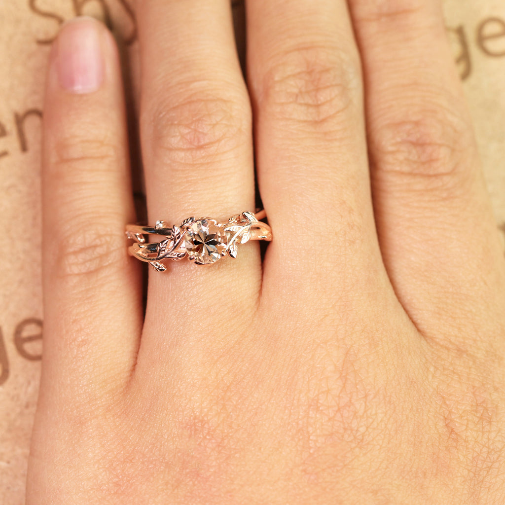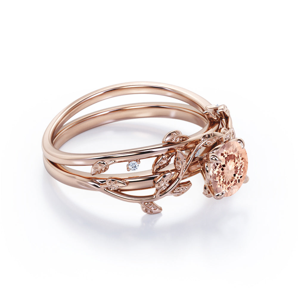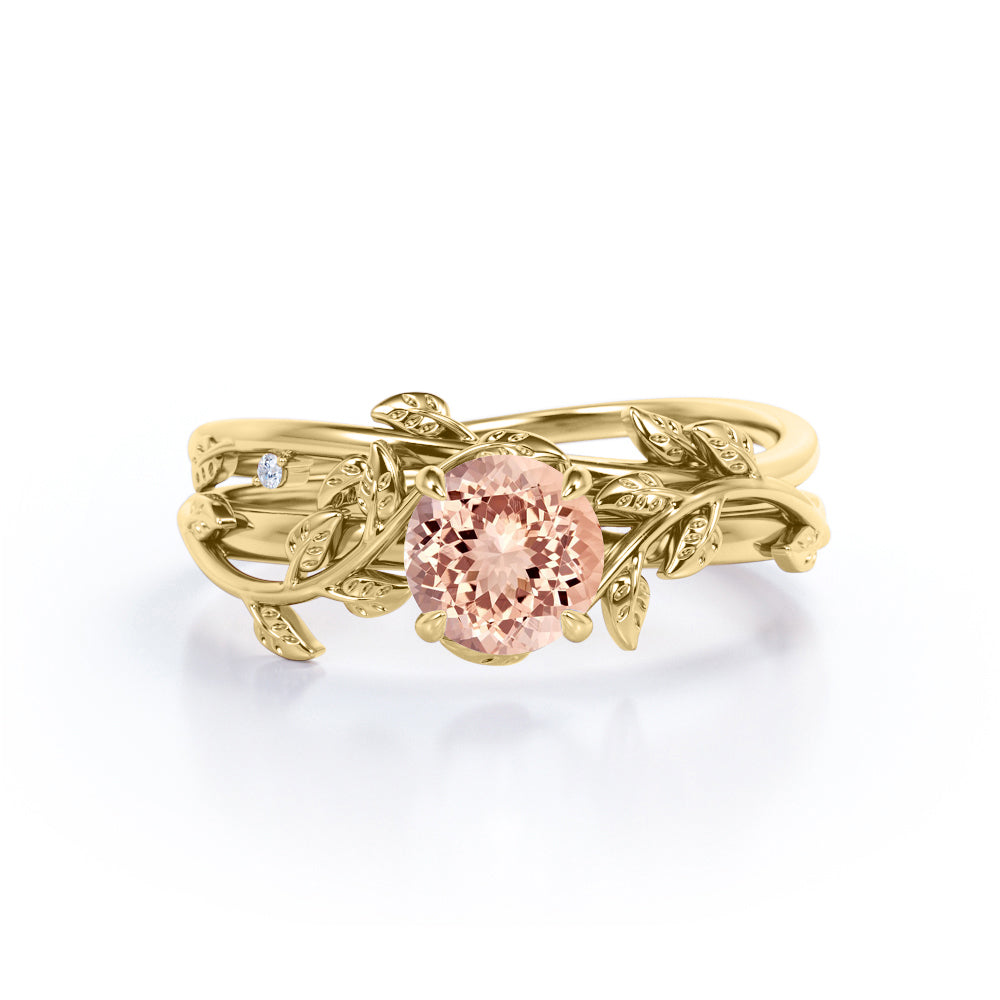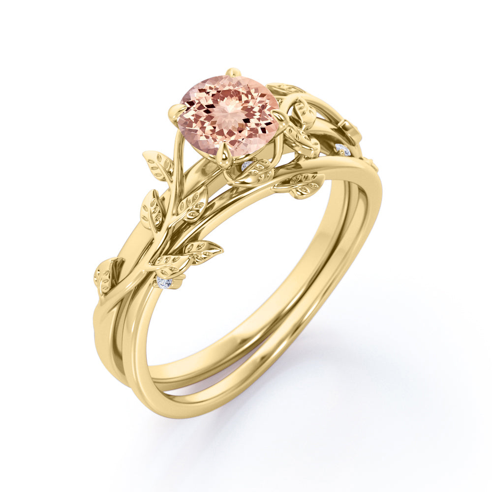 - The Morganite and Diamond Bridal Wedding Ring Set can be made in either 10k, 14k, or 18k real solid gold and in any color between Rose, White or Yellow.