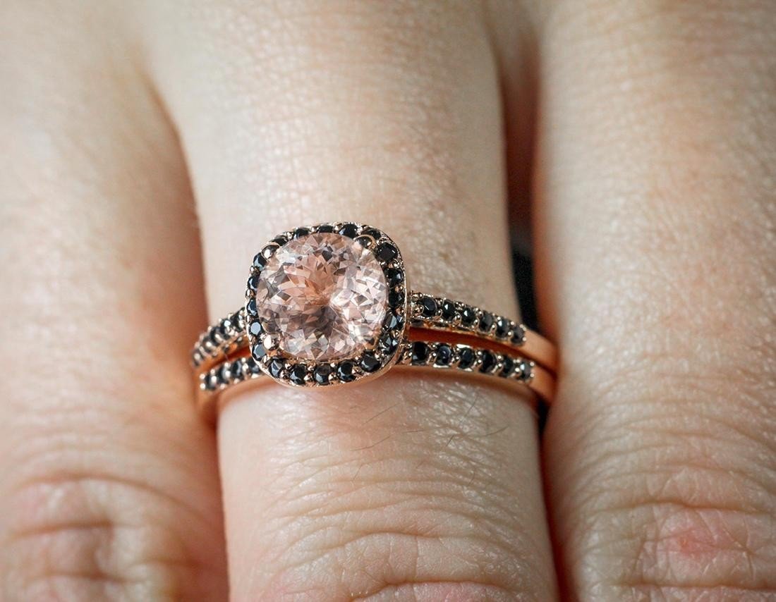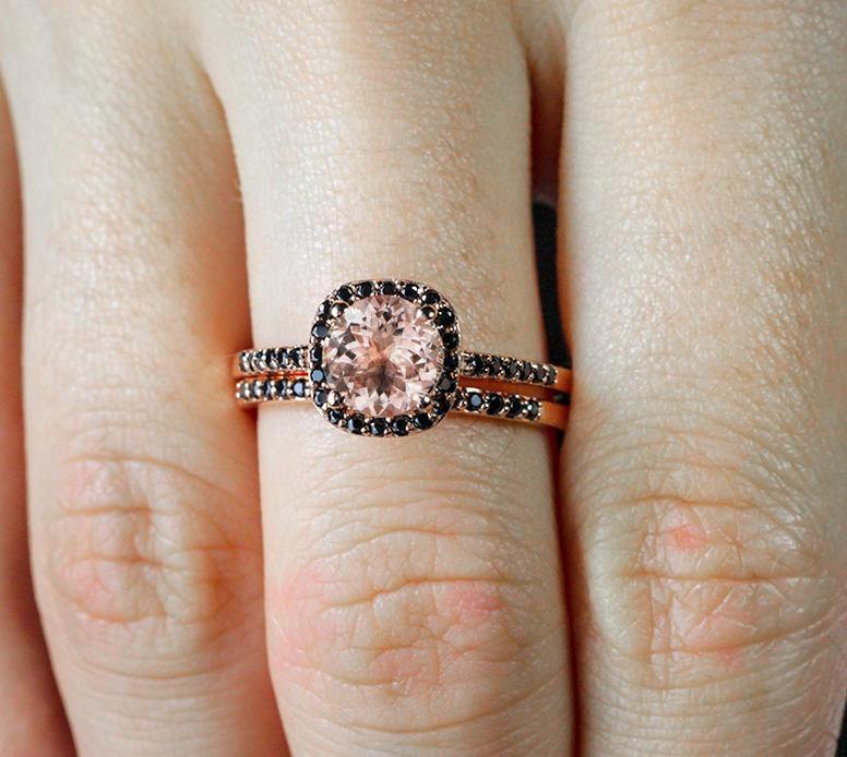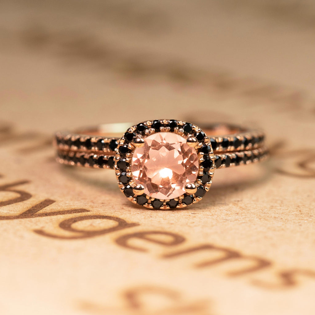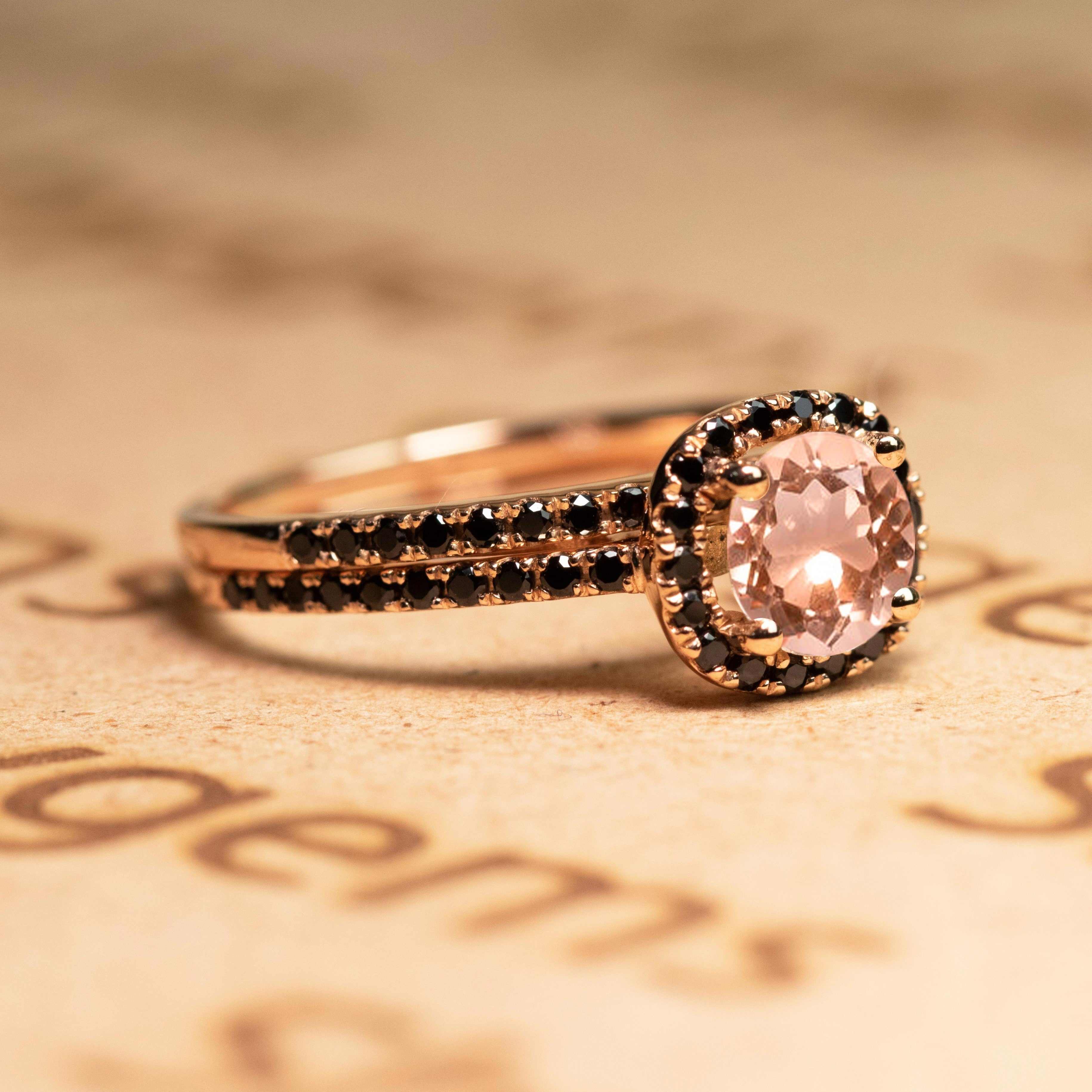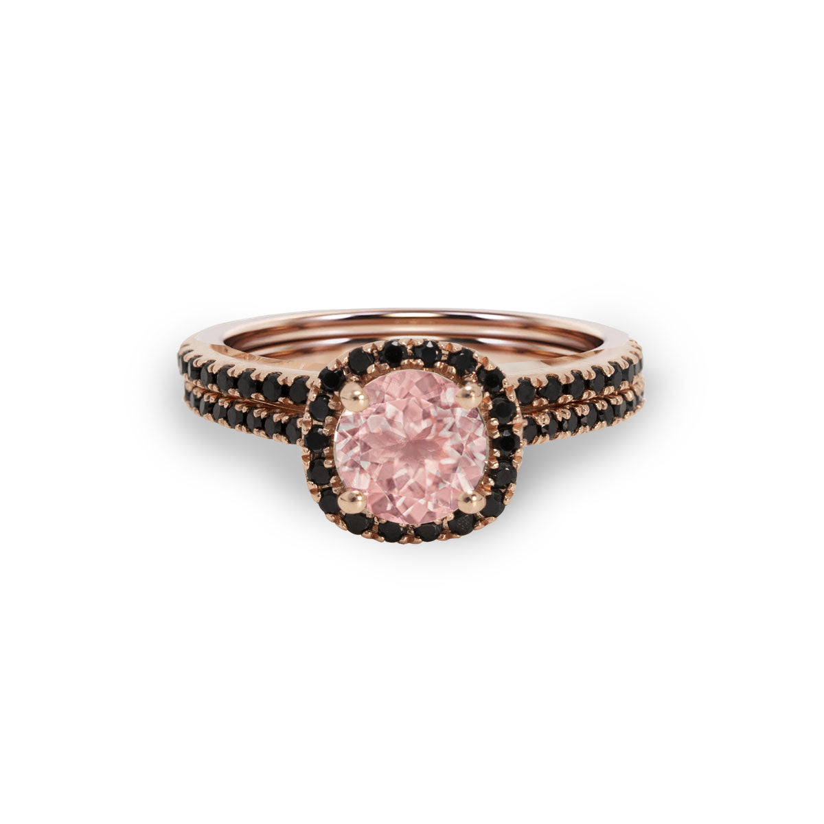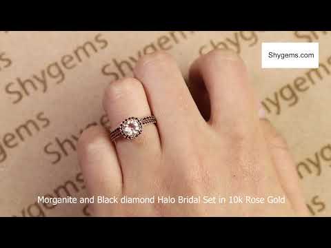 - The Morganite and Black Diamond Bridal Wedding Ring Set can be made in either 10k, 14k, or 18k real solid gold and in any color between Rose, White or Yellow.