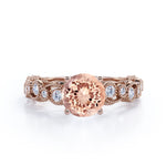 Limited Time Sale: Huge 1.50 Carat Round cut Morganite and Diamond Trilogy Three Stone Engagement Ring in Rose Gold