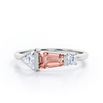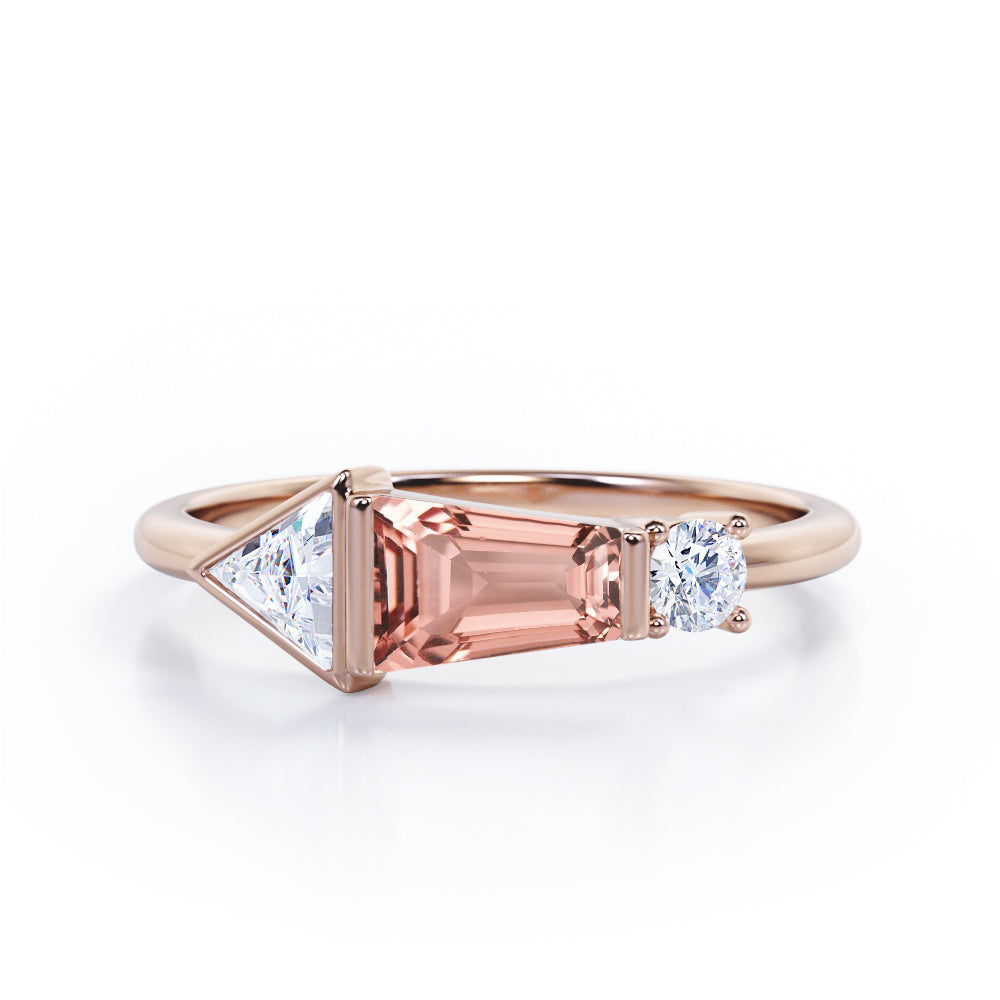 Lovely House Three Stone 1 carat Baguette Morganite and moissanite Engagement Ring in Rose Gold