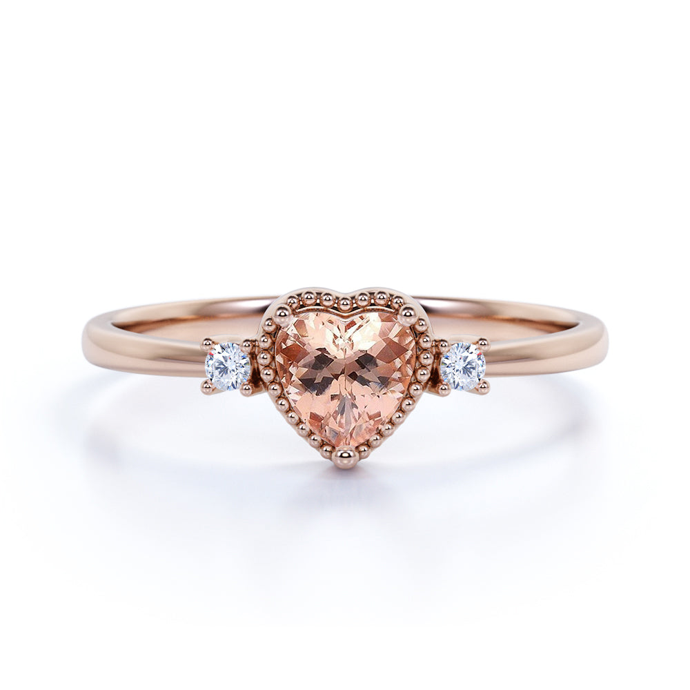This morganite engagement ring band is so durable and therefore, you can use it everyday and rely with this amazing morganite daily wear engagement ring band. This affordable morganite ring can also be made in rose, white or yellow gold and in 10k, 14k or 18k real solid gold. This morganite ring features an approximately 1.75 carat heart shaped certified morganite, surrounded by .10 carat authentic diamond accent, for a total weight of 1.85 carats.
