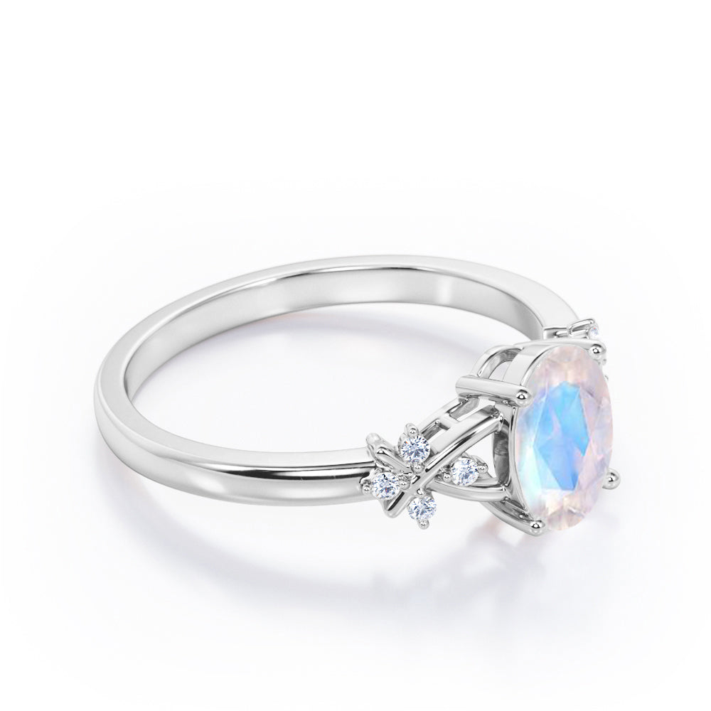0.5 ct Oval Moonstone Clover Leaf Engagement Ring