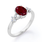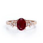 Luxurious Clover Lucky Leaf 0.5 carat Oval Lab-Created Ruby and Diamond Engagement Ring in Rose Gold