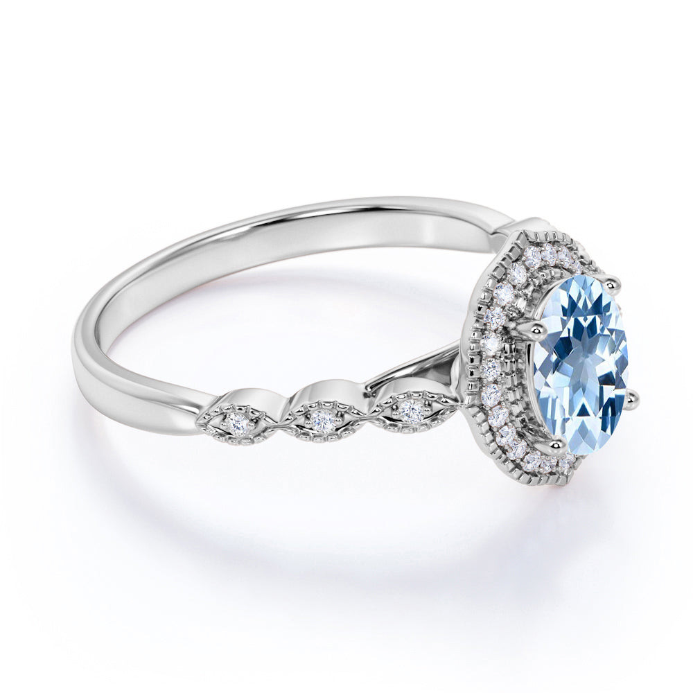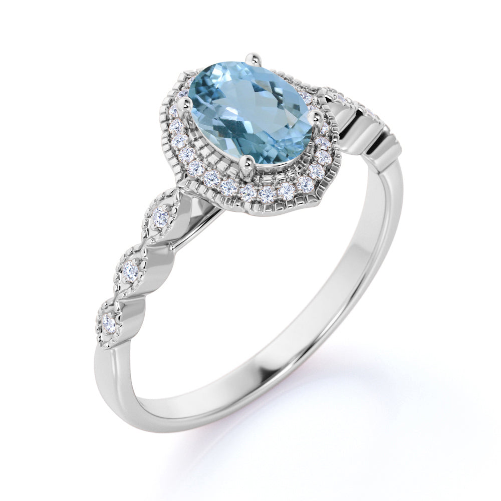 This aquamarine is very unique since we can customized this to your preferred style or cut. Either in cushion, square, princess, pear, teardrop, round brilliant, oval, marquise, heart, trilliant, trillion, emerald, radiant, Ascher or any other cut that you wish to receive. This aquamarine ring features an approximately1 carat oval shaped certified aquamarine, surrounded by .50 carat authentic diamond accent, for a total weight of 1.50 carats.