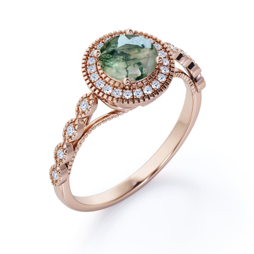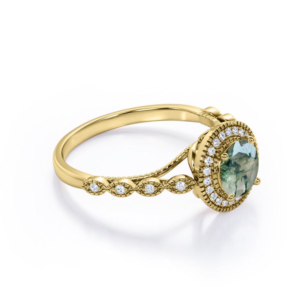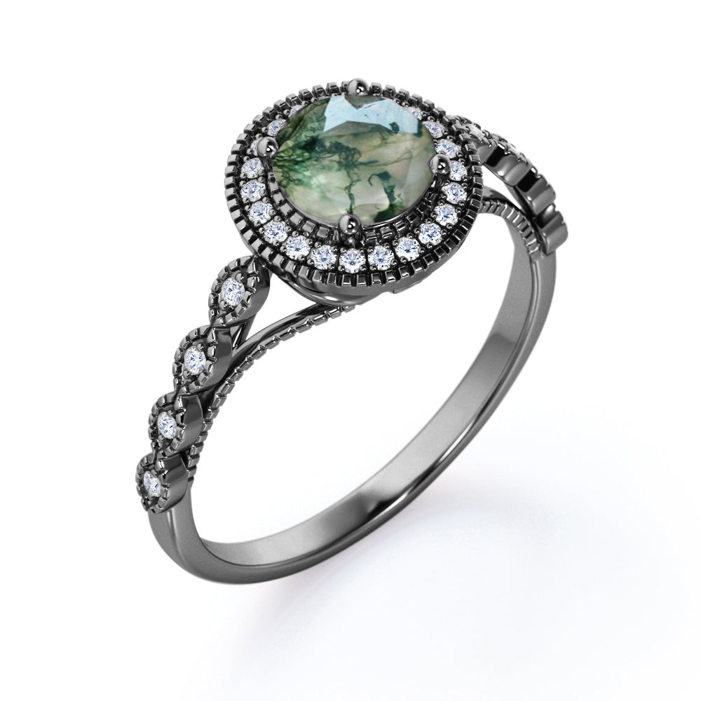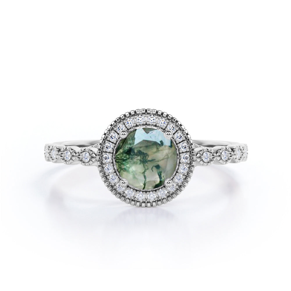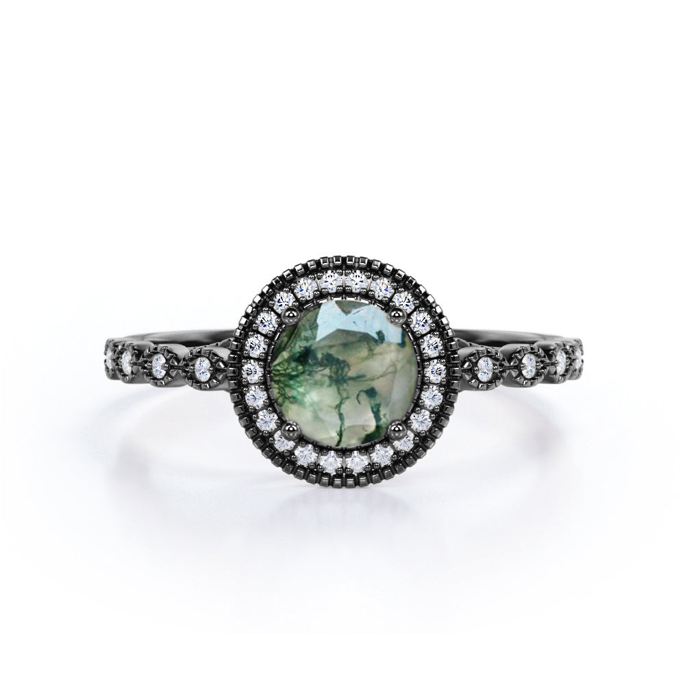 Vintage 1.50 Carat Round Cut Moss Agate Engagement Ring