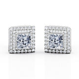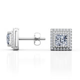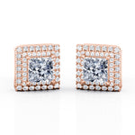 Micro Pave Double Frame 0.70 CT TDW Princess Diamond Antique Stud Earrings in Rose Gold