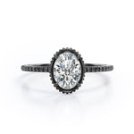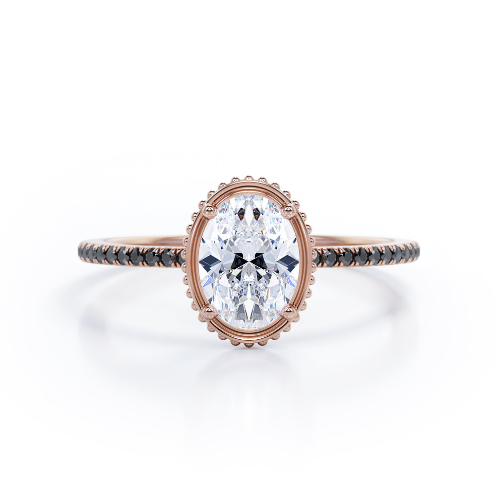 Milgrain Bezel Prong 1.5 TCW Oval Cut Moissanite with Lab Created Black Diamond Pave Style Engagement Ring in Rose Gold