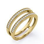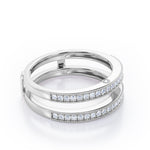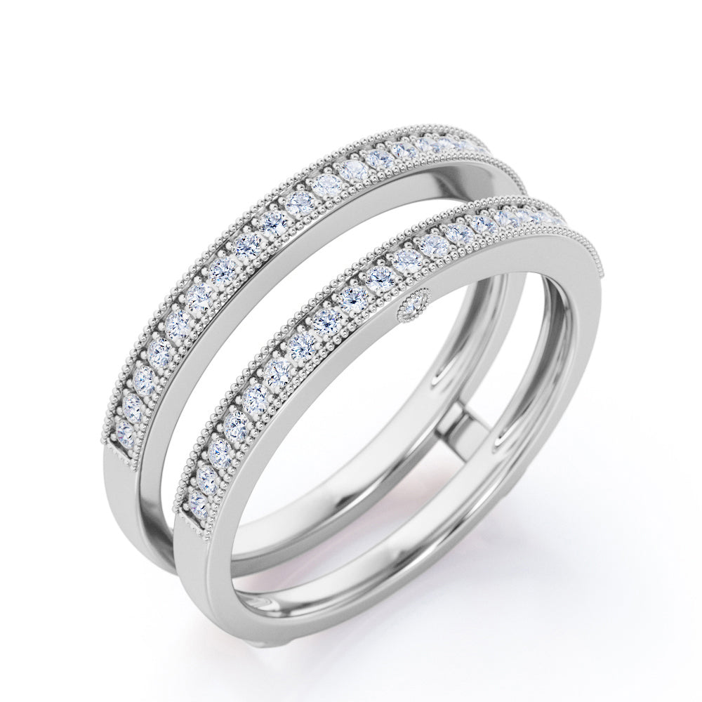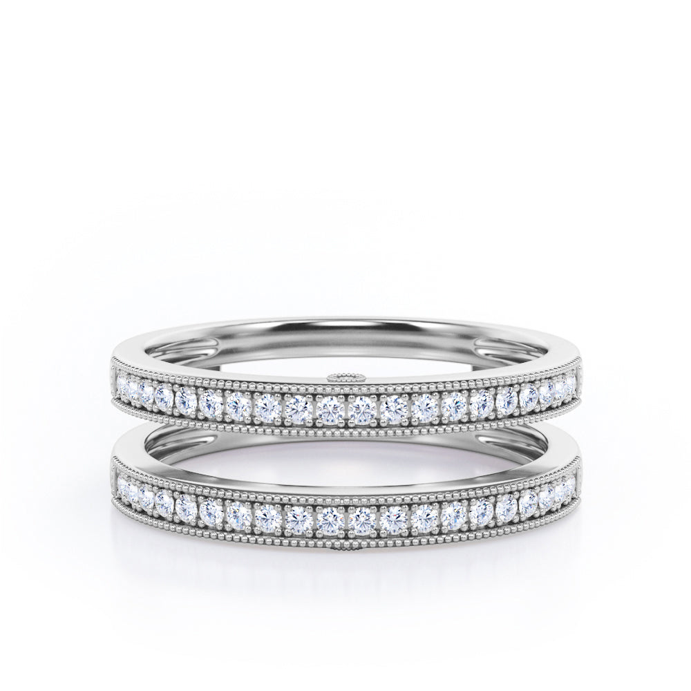 Milgrain Decorated Dual Band - 0.3 TCW Round Cut Diamond - Scalloped Pave Channel Wedding Band - 10K White Gold