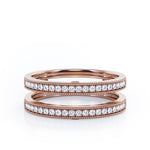 With this Milgrain Decorated Dual Band - 0.3 TCW Round Cut Diamond - Scalloped Pave Channel Wedding Band - 10K White Gold, you can make your proposal day unforgettable. Handcrafted with care into a wonderful round cut by our most talented jewelers, this exceptional diamond wedding band is made up of total 0.3 carat on solid white gold. For those looking for something a little out of the ordinary, this cheap diamond wedding band is ideal for those who wish to express their charisma and uniqueness. Refracting qualities of this diamond wedding band for women will accentuate any outfit the wearer chooses to put on. Beautiful and affordable, this gold diamond wedding band is a great choice for any woman's jewelry collection. Our anniversary diamond wedding band , the birthstone ring for April, symbolically represents love and dedication, is the best gift you can give to your significant other. This anniversary diamond wedding band can be customized, either in 10K rose gold, 10K white gold, 10K black gold, or 10K yellow gold, upon customer request. Your love story will be complete with this diamond band.