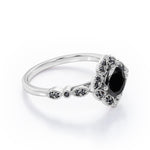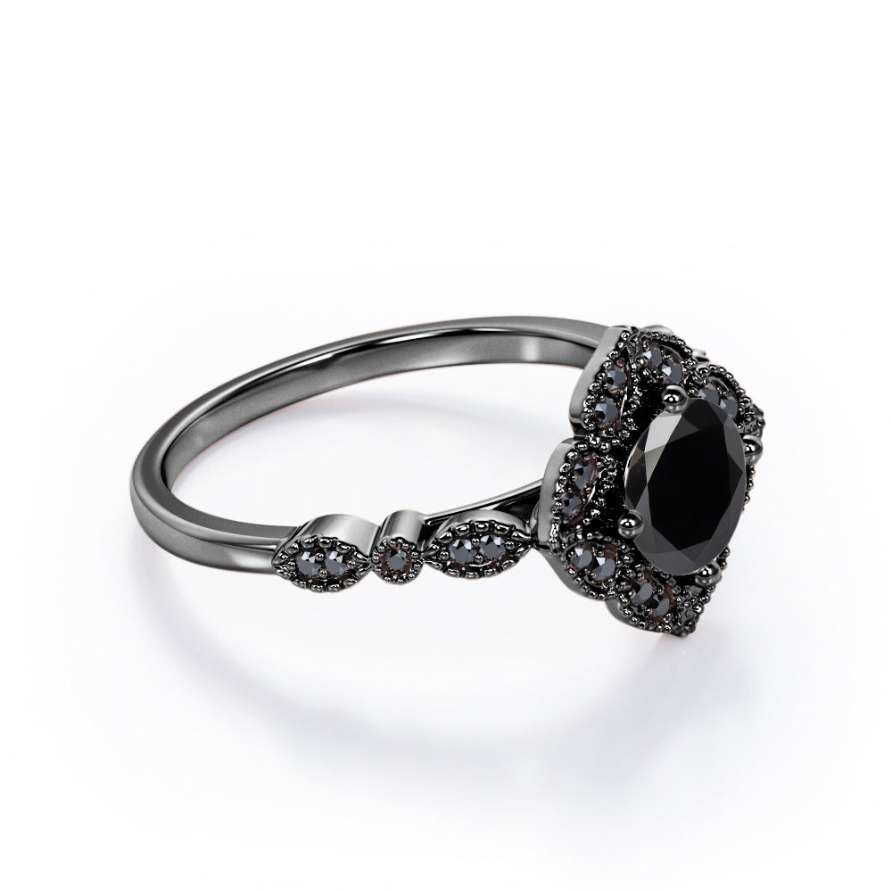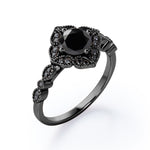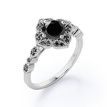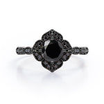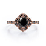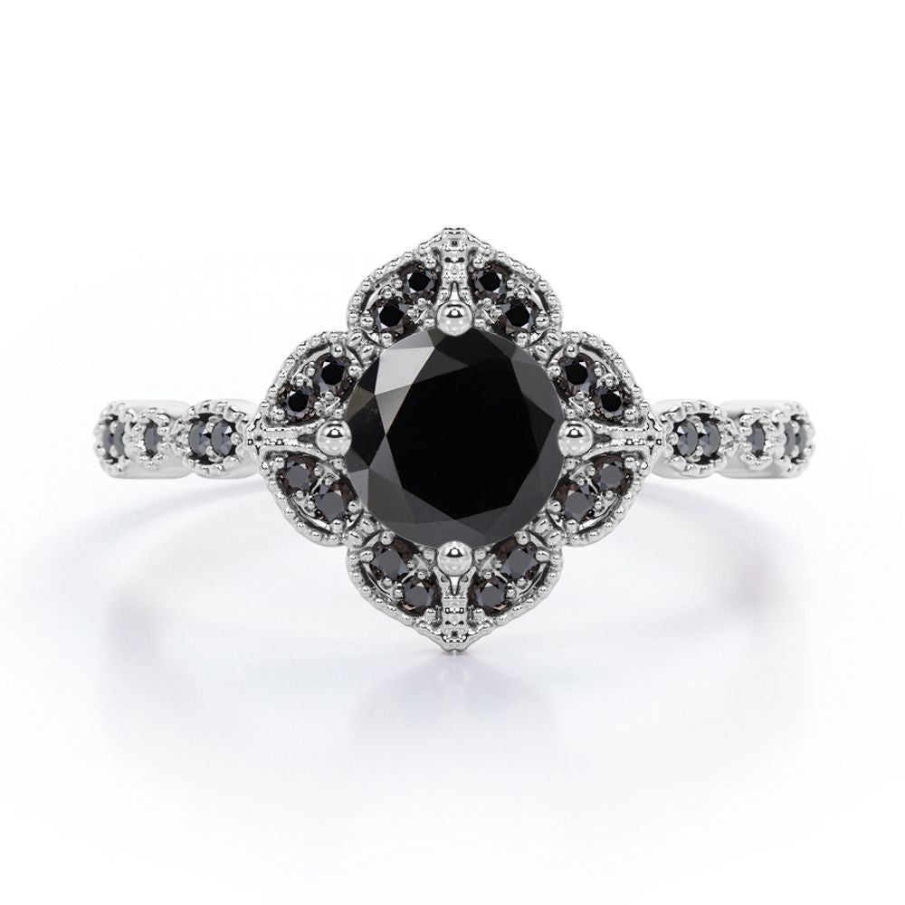 1.5 ct Round Lab Black Diamond Vintage Flower Engagement Ring