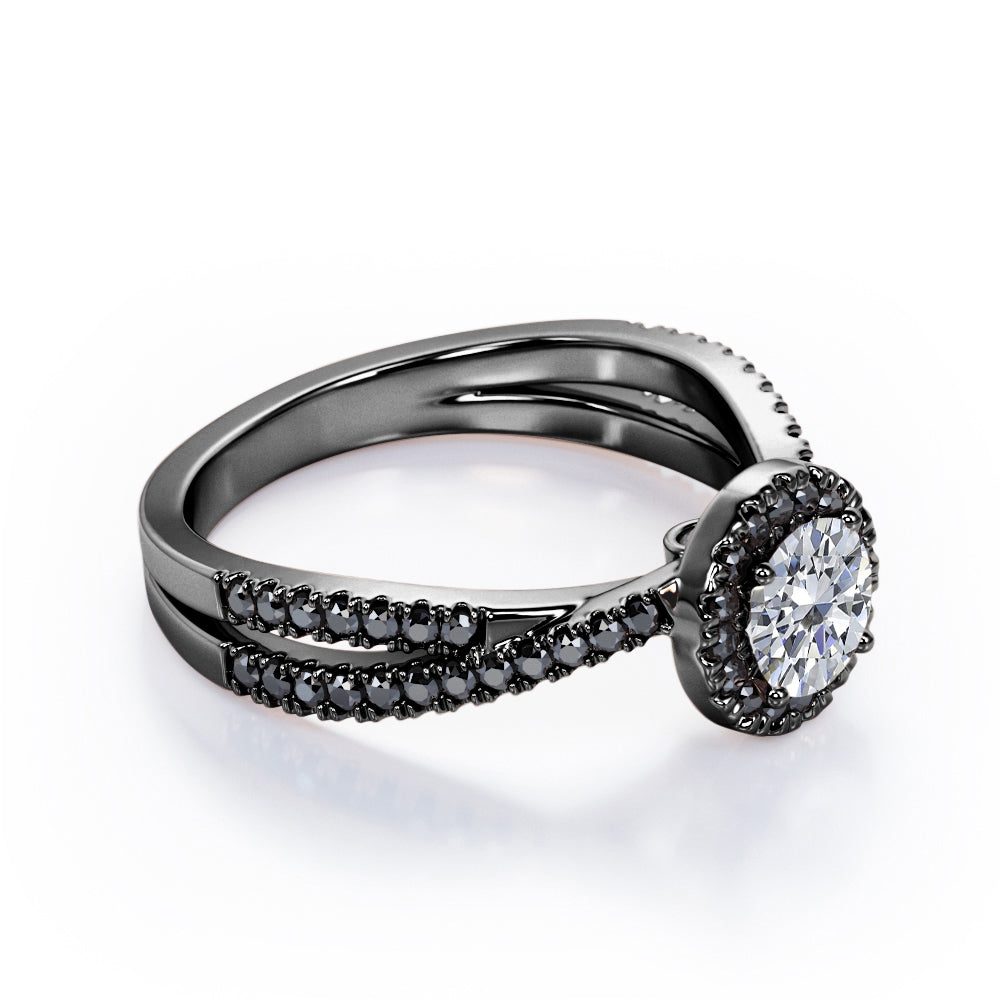 With this Milgrain Halo - 1.4 TCW Round Cut Moissanite with Lab Created Black diamond - Infinity Double Strand Engagement Ring in White Gold, you can make your proposal day unforgettable. Hand-cut with deftness into a lovely shape round cut by our lapidary expertise, this appealing Moissanite ring for women consists of total 1.4 carat Moissanite with lab-created Black diamond side stones on solid white gold. Distinct and unusual, this wedding anniversary ring is ideal for those who wish to express their charisma and uniqueness. Refracting qualities of this vintage moissanite ring for women will accentuate any outfit the wearer chooses to put on. Beautiful and affordable, this affordable engagement ring for women is a great choice for any woman's jewelry collection. Our affordable Moissanite ring, the birthstone ring for the fourth month, represents riches and extravagance and would make an excellent gift for friends or your better half. This engagement ring for women can be customized, so customers can choose one of metal colors between White gold, rose gold, yellow gold and black gold in 18k Gold over Silver, 10k and 14k gold metal options. Let's show her how much you care by giving her this Moissanite jewelry.