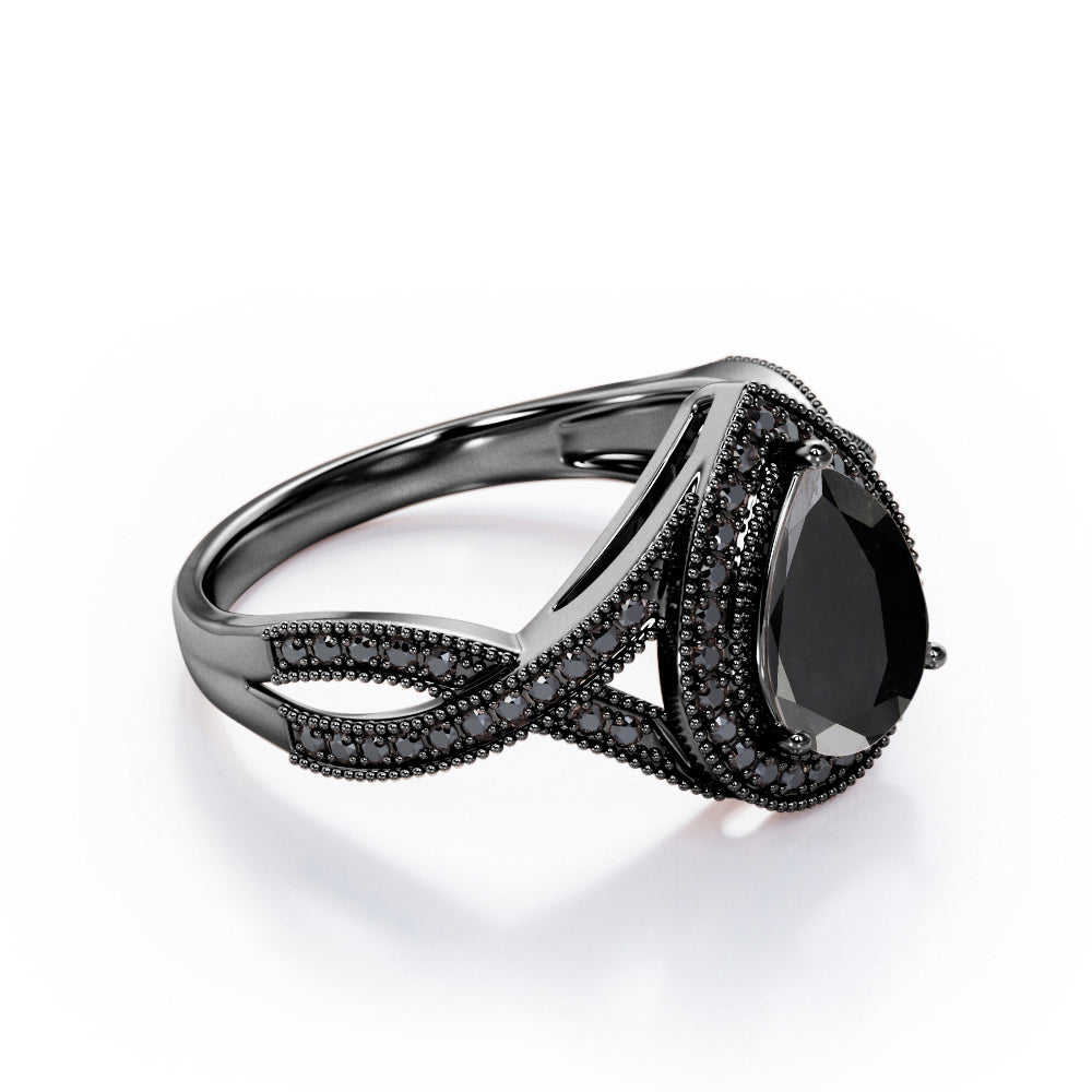 1.5 ct Teardrop Lab Black Diamond Halo Infinity Engagement Ring