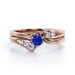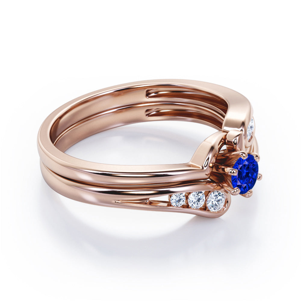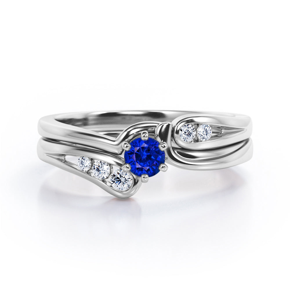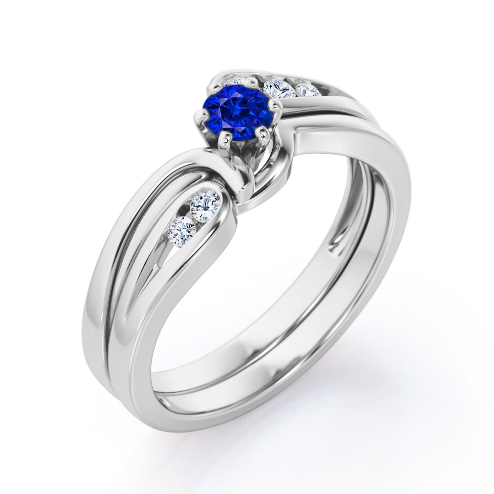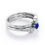 Mini Channel Design 0.5 TCW Round Cut Blue Sapphire and Moissanite Six-Prong Bridal Ring Set in White Gold