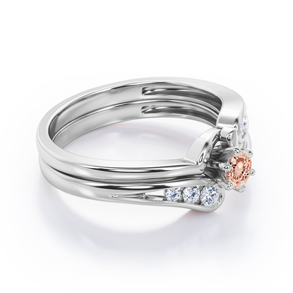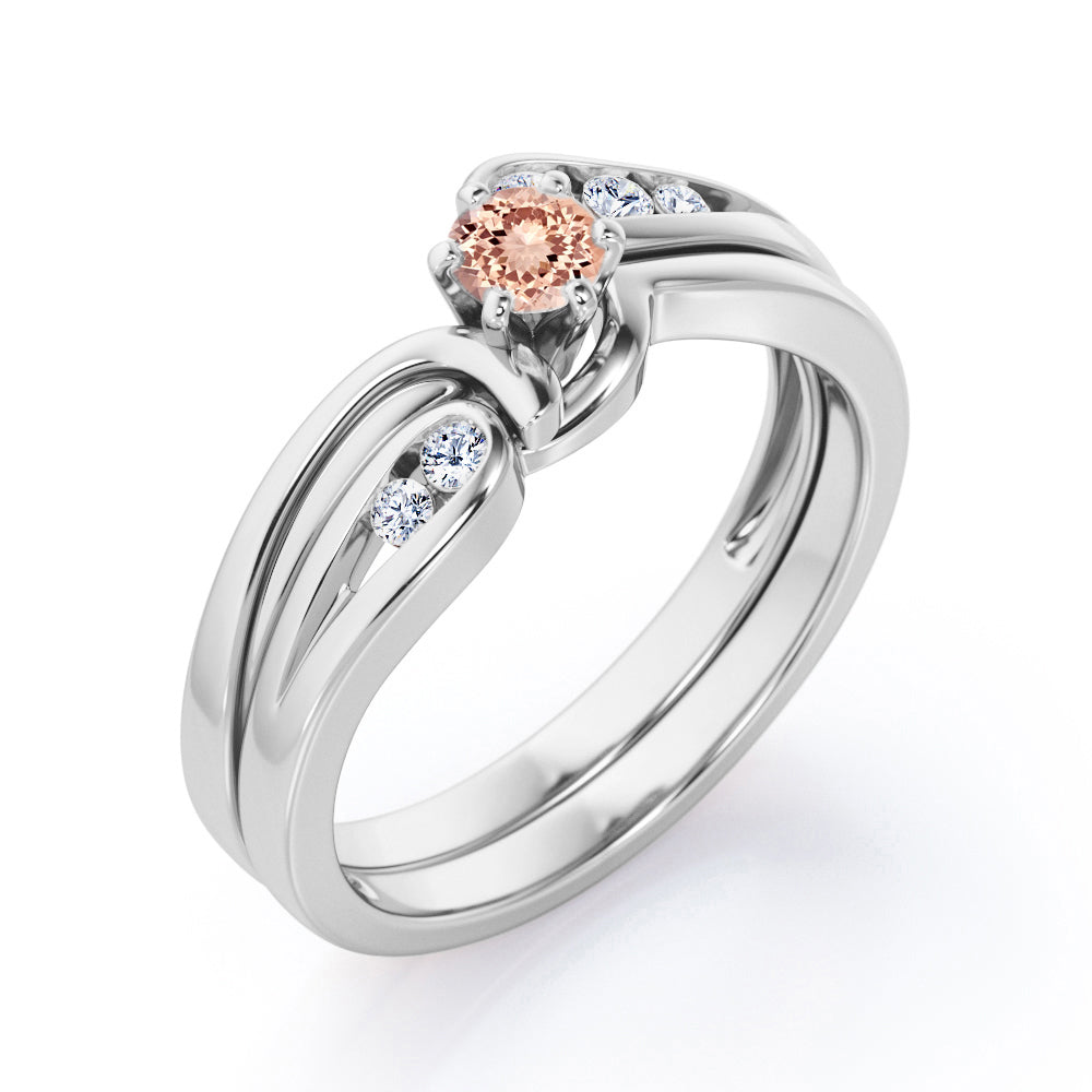 Mini Channel Design 0.5 TCW Round Cut Morganite and Moissanite Six-Prong Bridal Ring Set in Rose Gold