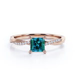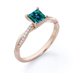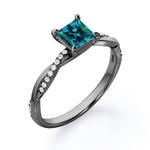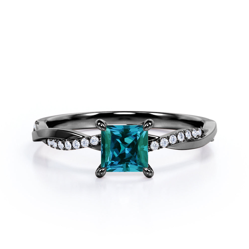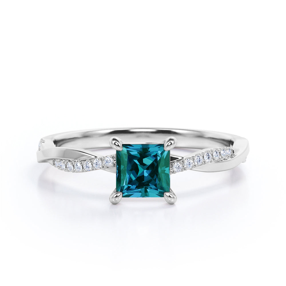 Minimal 4 Claws 1.25 Carat Princess Cut Lab Created Alexandrite And Diamond Infinity Engagement Ring In White Gold. You won't have much else to say other than wow. This spectacular white gold engagement ring is made with lab-grown 1 carat alexandrite for amazing brilliance. A twisted band looks perfect with a princess cut solitaire alexandrite which makes this ring even more special. Claw prongs holds the stone in a place while the diamonds of 0.25 carat are wrapped around the twisted band outside. Classic yet fashionable, this minimal 4 claws 1.25 carat princess cut lab created alexandrite and diamond infinity engagement ring in white gold can also be customized to 18k Gold plating over silver, 10k Gold, 14k Gold or 18k Gold as you prefer. Crowned as June birthstone, this flawless synthetic Alexandrite ring will bring hope as well as encouragement to you. Hurry up and add it to your cart now.