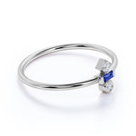 Minimal Baguette Shape Vivid Blue Sapphire and 3 Stone Diamond Engagement Ring in White Gold