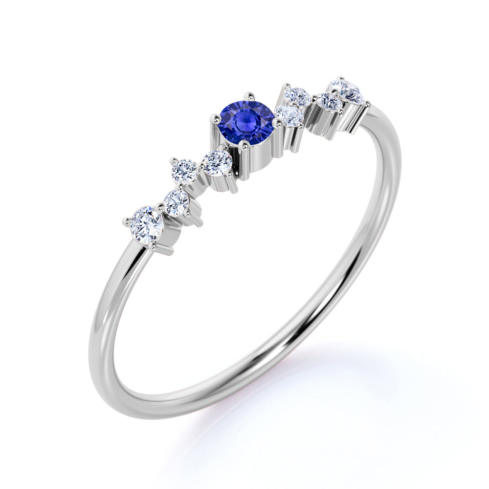 Minimalist 0.35 Carat Round Shaped Australian Blue Sapphire and Antique Diamond Engagement Ring in White Gold