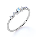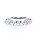 This little moonstone is best for engagement ring or proposal ring. The vibrant color of this ring brings life to the fullest. This petite moonstone ring is so beautiful and durable despite its dainty look. This mini moonstone ring features an approximately .25 carat round cut genuine moonstone, surrounded by .10 carat authentic diamond accent for gold ring and moissanite for silver ring, for a total weight of 0.35 carats.
