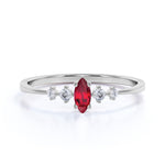 This small ruby ring is the best for you, not just by the look but the price and quality as well. Dainty, petite and minimalist approach. Little by little, this little ruby ring will soon be yours and you can finally ask her to marry you. This mini ruby ring features an approximately .35 carat marquise cut authentic ruby, surrounded by .14 carat natural diamond accent, for a total weight of 0.49 carats.