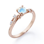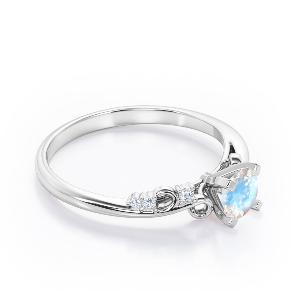 Minimalist 1.05 Carat Round Cut Moonstone And Diamond Seven Stone Engagement Ring In White Gold