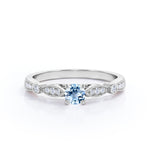 Minimalist 1.10 Carat Round Cut Aquamarine And Diamond Vintage Engagement Ring In White Gold