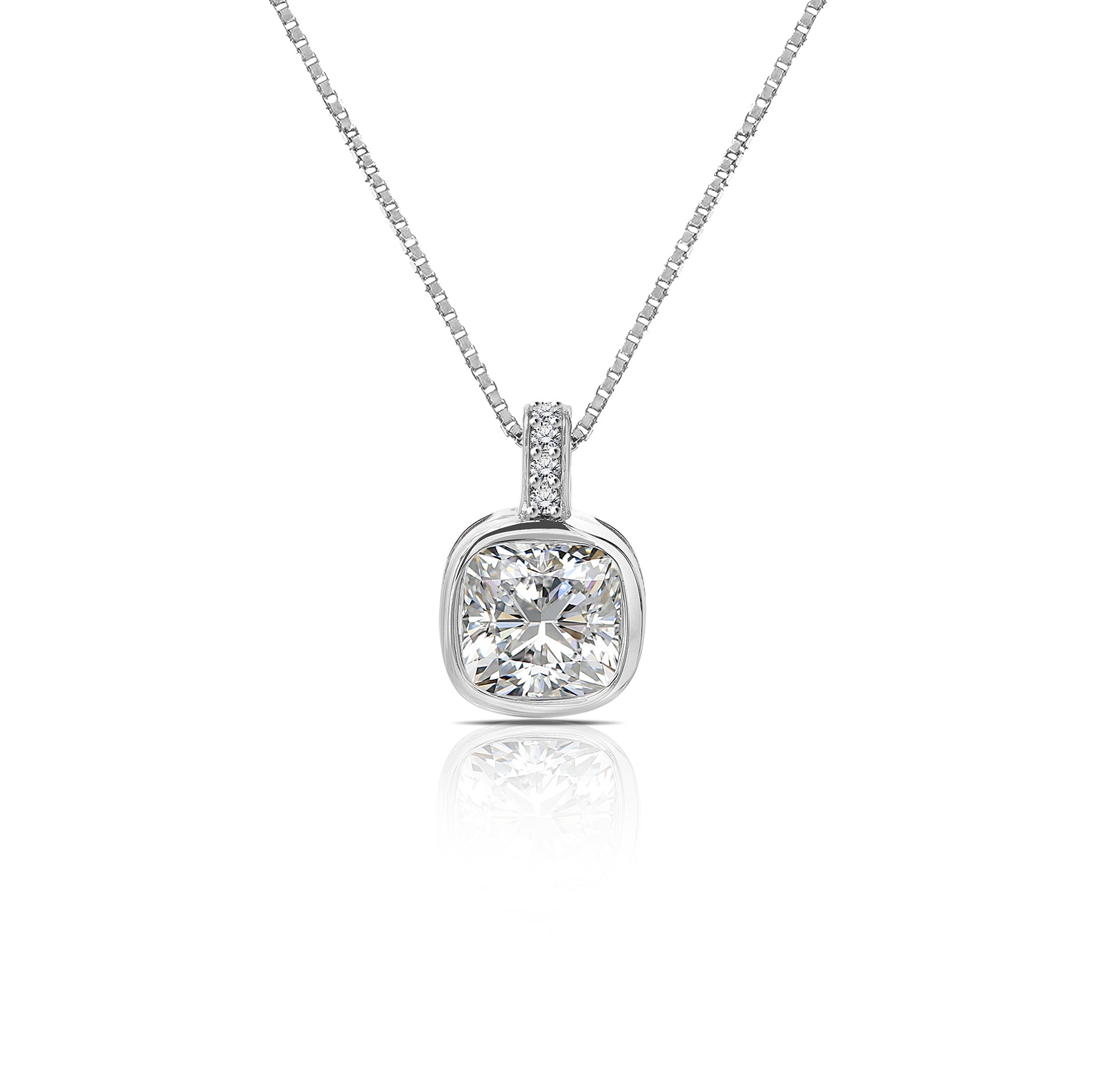 Minimalist 1.8 Carat Cushion Cut Bezel Pendant Necklace in Sterling Silver - Solitaire Pendant