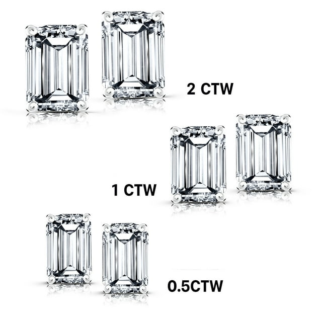 Minimalist 2 Carat Emerald Cut Moissanite Solitaire Stud Earrings In 18K Rose Gold Plating Over Silver