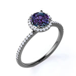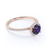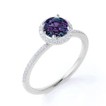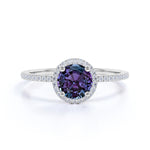 Minimalist Halo 1.50 Carat Round Cut Simulated Alexandrite and Diamond Pave Engagement Ring