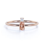 Minimalist Oval Cut Light Pink Morganite and 2 Stone Diamond Engagement Ring in Rose Gold
