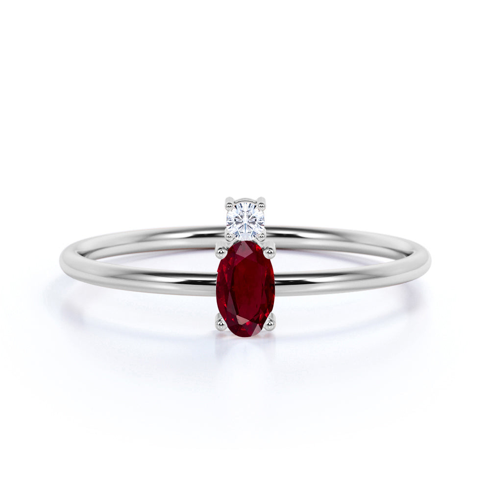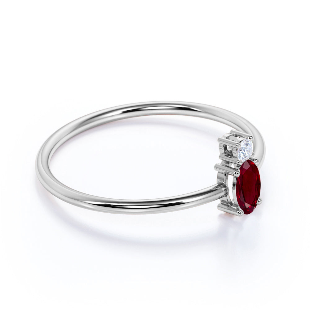 Minimalist Oval Cut Lab-Created Ruby and 2 Stone Diamond Engagement Ring in White Gold