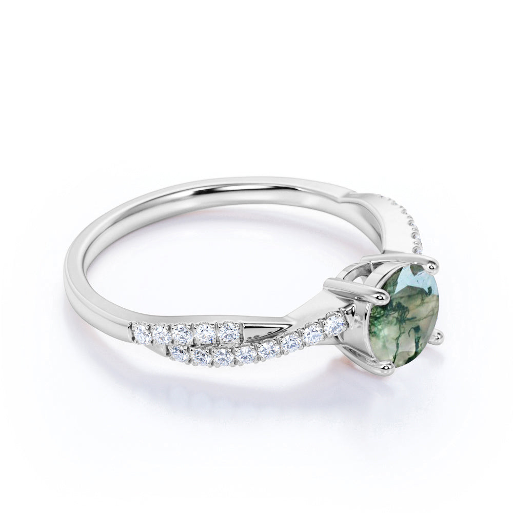 Infinity Pave 1.25 ct Round Cut Moss Agate Engagement Ring