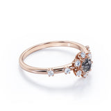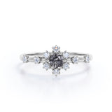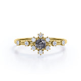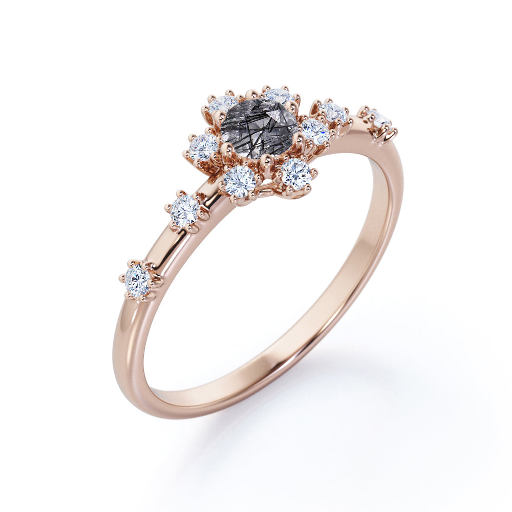 Minimalist Snowflake Cluster 0.75 Carat Round Cut Solid Tourmaline Black Rutilated Quartz and Diamond Engagement Ring - Promise Ring
