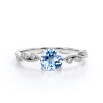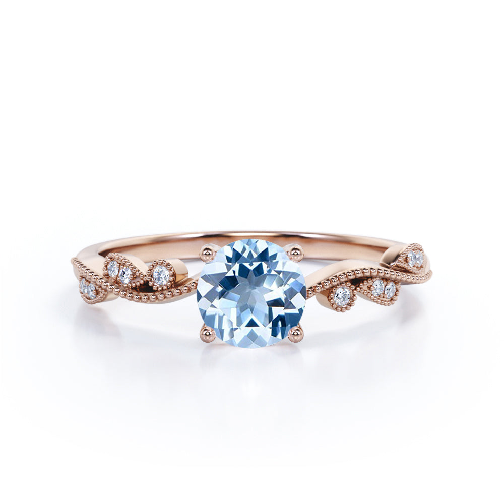1.50 ct Round Aquamarine Milgrain Art Deco Engagement Ring